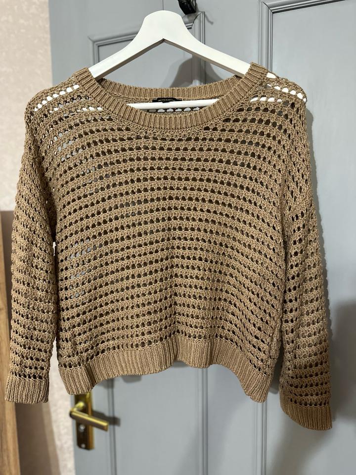 Стильный ажурный джемпер More & More. Лёгкая вязка с эффектом сетки, красивый бежево-карамельный оттенок. Состав: +7### ### ## ##ртами. Модель оверсайз Артикул: 446520
