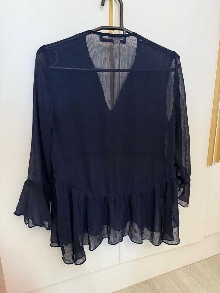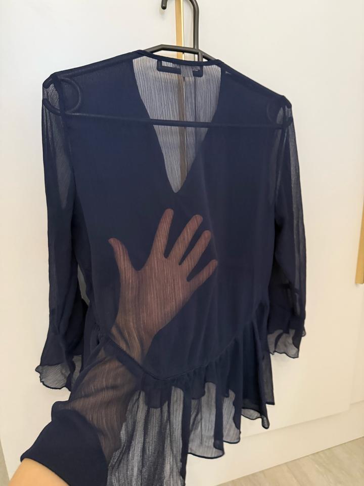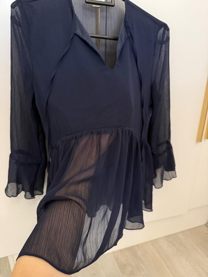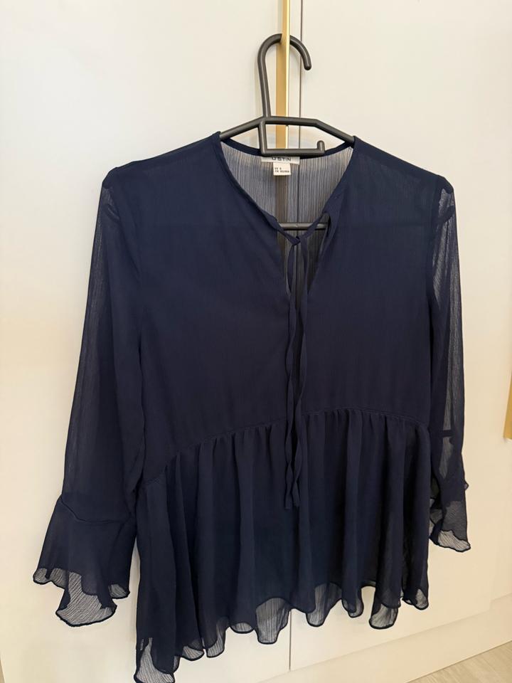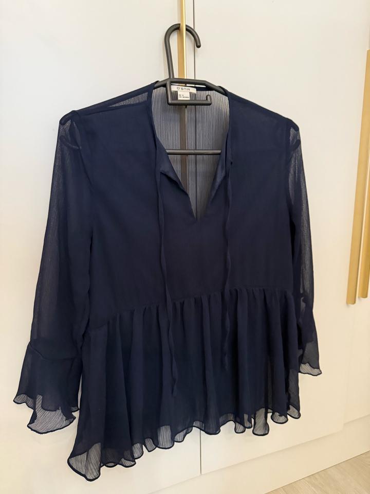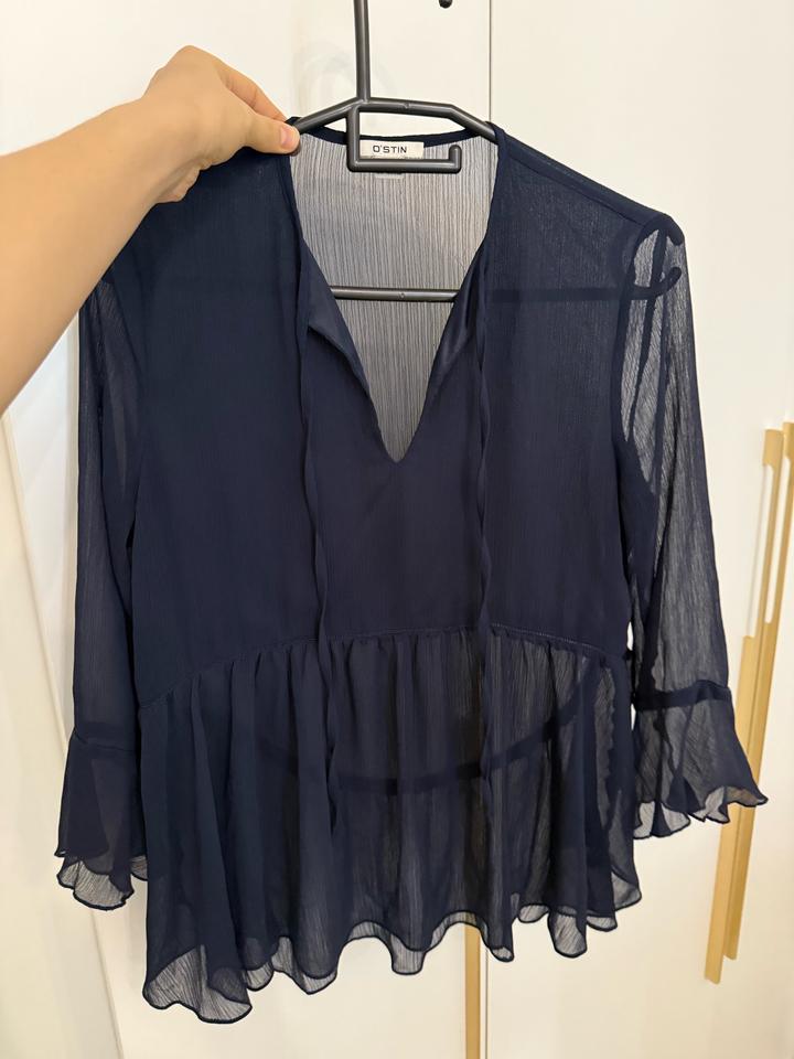 Продам блузку OSTIN, размер S. Цвет: темно-синий Материал: полупрозрачный, с подкладом спереди, сзади — без подклада, украшена руюшками. Состояние: хорошее Артикул: 446682