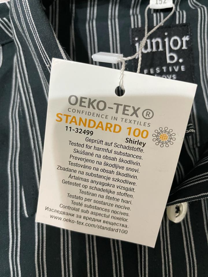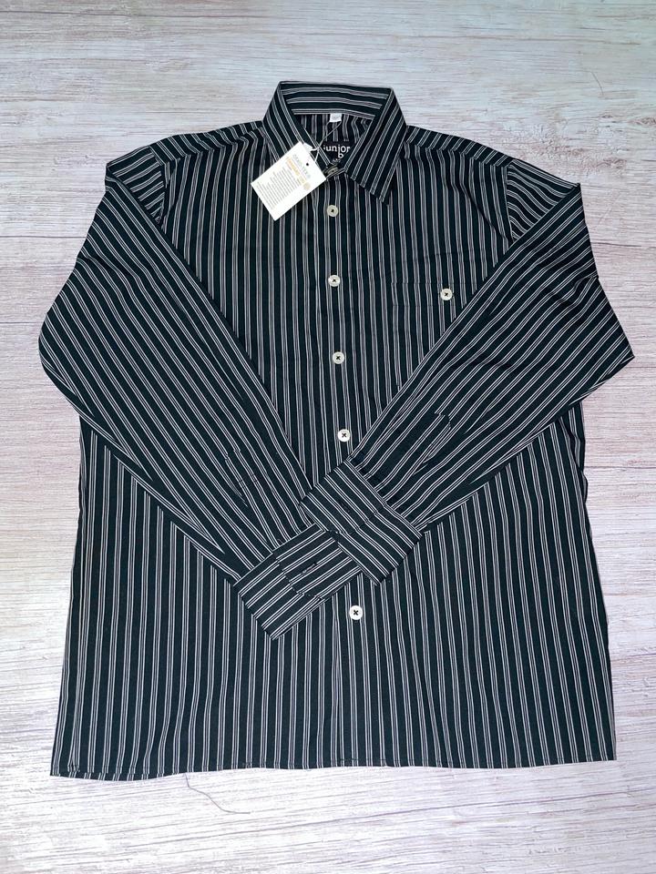 Рубашка Junior B Festive Boys, размер 152 (новая) Стильная рубашка в полоску, новая с биркой. Отлично подойдёт для школы, мероприятий и повседневной носки. Классический дизайн, приятная к телу ткань, хорошо держит форму. Характеристики: • Бренд: Junior B Festive Boys • Размер: 152 • Состояние: новое, с биркой • Состав: 60% хлопок, 40% полиэстер • Цвет: тёмно-зелёный / чёрный в белую полоску • Сертификат OEKO-TEX Standard 100 (безопасная ткань) Артикул: 447102