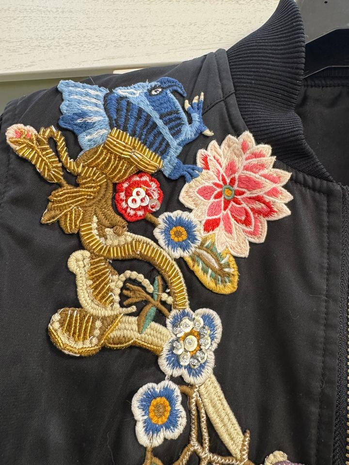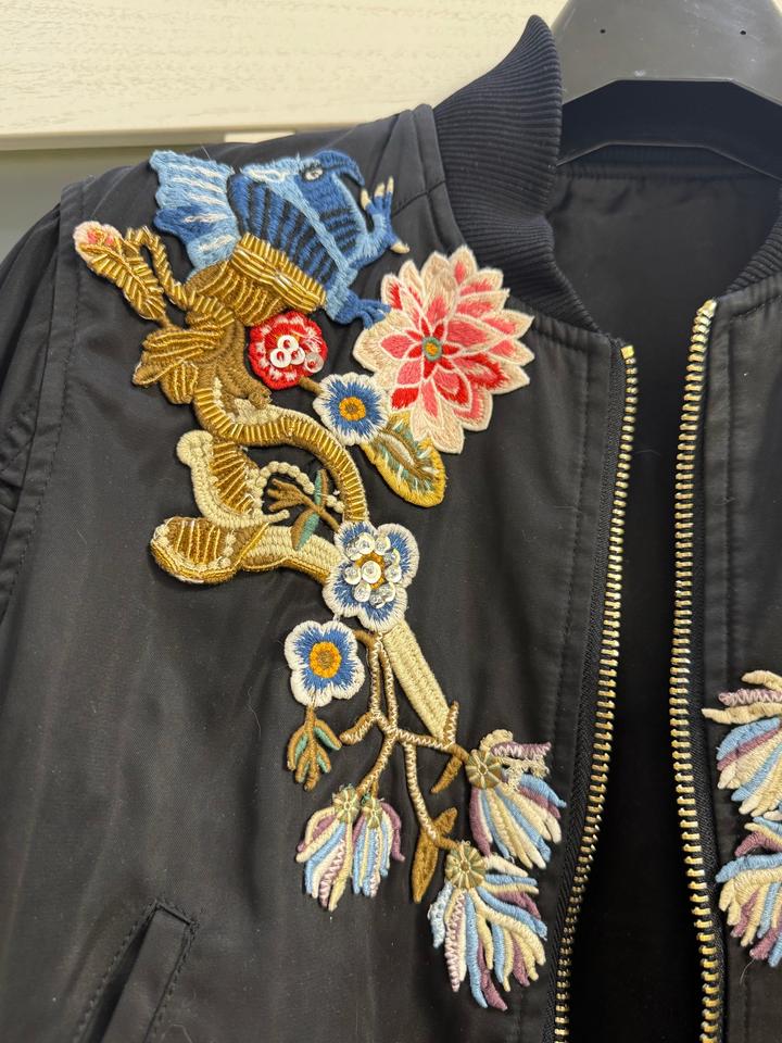 Женская куртка-бомбер относится к модели с цветочной вышивкой от бренда Alexander McQueen Артикул: 447120