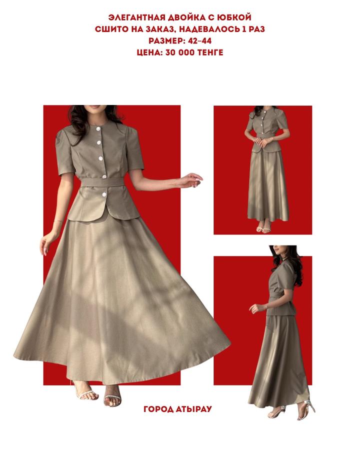 Элегантная двойка с юбкой. Сшита на заказ по индивидуальному пошиву (стоимость пошива 55 000 тг) в ai_exclusive. Надевалась 1 раз, в идеальном состоянии. Отлично подойдёт на сырға салу, құдалық итд. Артикул: 447399