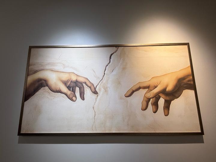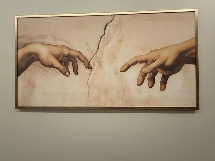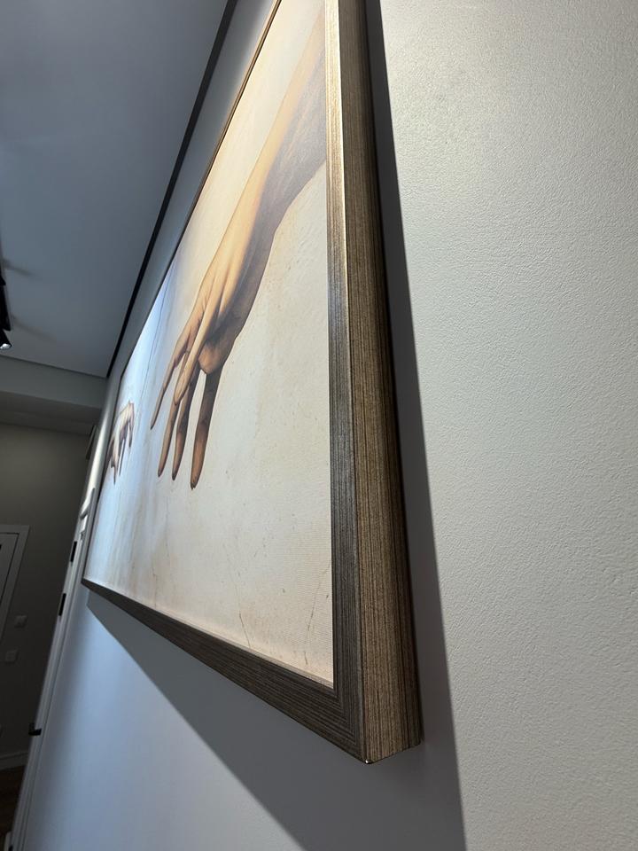 Репродукция картины Микеланджело «Сотворение мира». Полноценная картина на подрамке в красивом багете бронзового цвета. Размер 148х78 см. Отлично украсит, как современный так и классический интерьер. Артикул: 447497