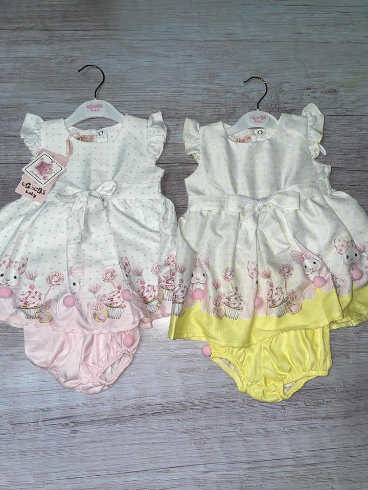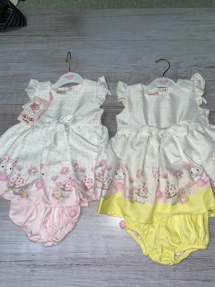 Милая двойка(платье,шортики) В желтом цвете один размер (24месяца 92см) В розовом размеры: от 6месяцев Прошу уточнять Артикул: 447516