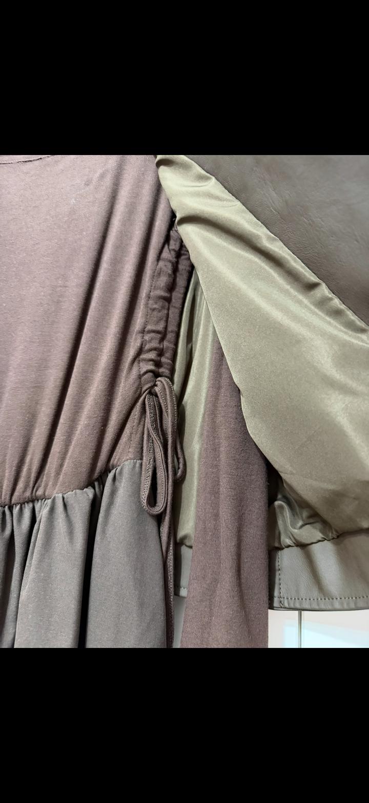 Коричневое платье. Размер М. Хорошо тянется, 2-3 раза носила. Жилетка натуральная кожа. Платье вискоза. Покупала в Адем за 45.000 тг. Состояние идеальное Артикул: 447815