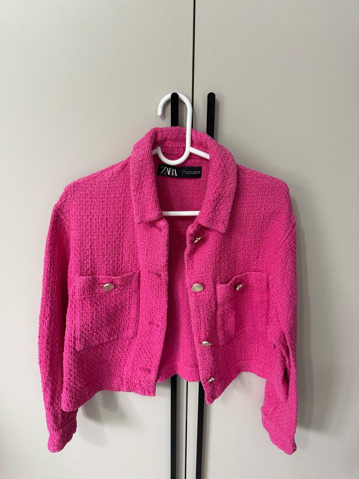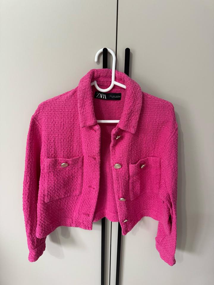 Розовый укороченый пиджак Зара,размер подойдёт от С до Л Артикул: 448459