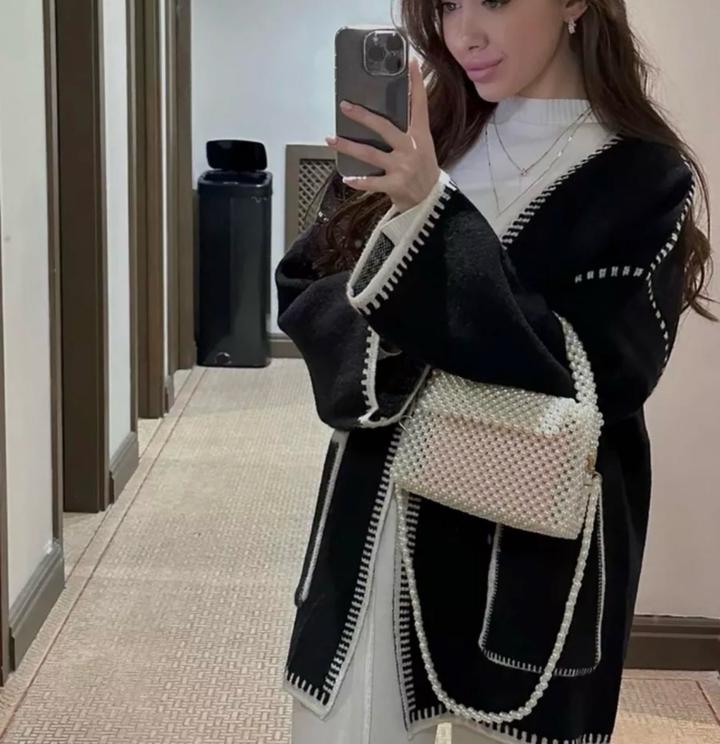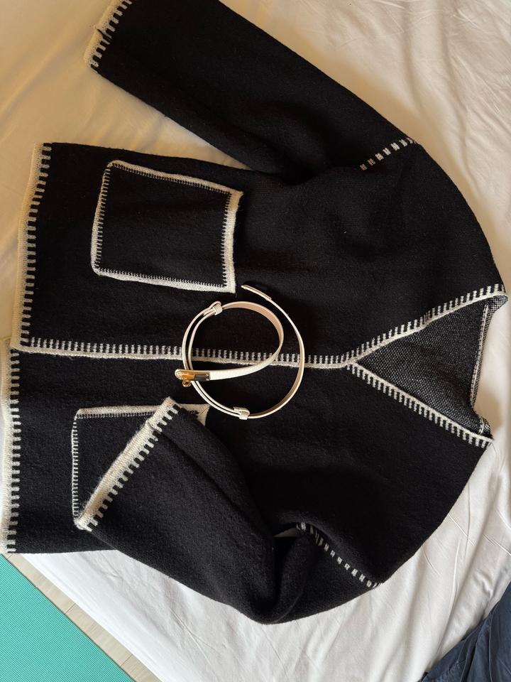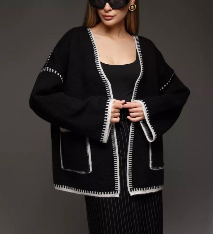 Кардиган черный, теплый с белым ремнем Артикул: 448677