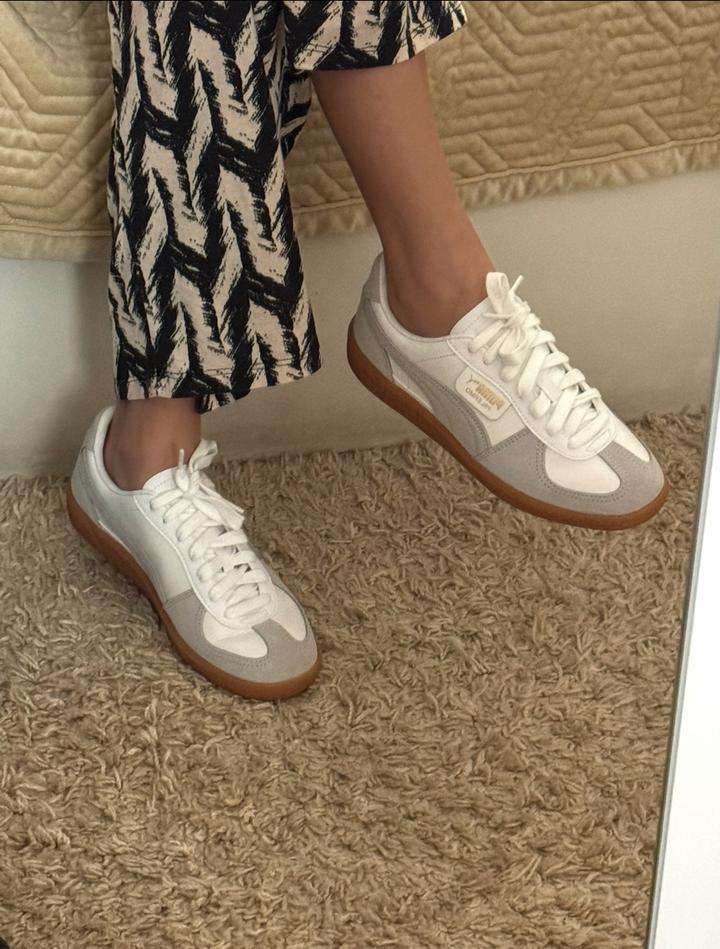 Кеды Puma Palermo Заказывала на сайте за 58.000 тенге Размер 39,идут размер в размер на стельку 25 см Стали маленькие🥹 В носке 3 раза По желанию еще отправлю доп.фото Имеются заломы в передней части из-за ходьбы,реальному покупателю торг) Артикул: 448848