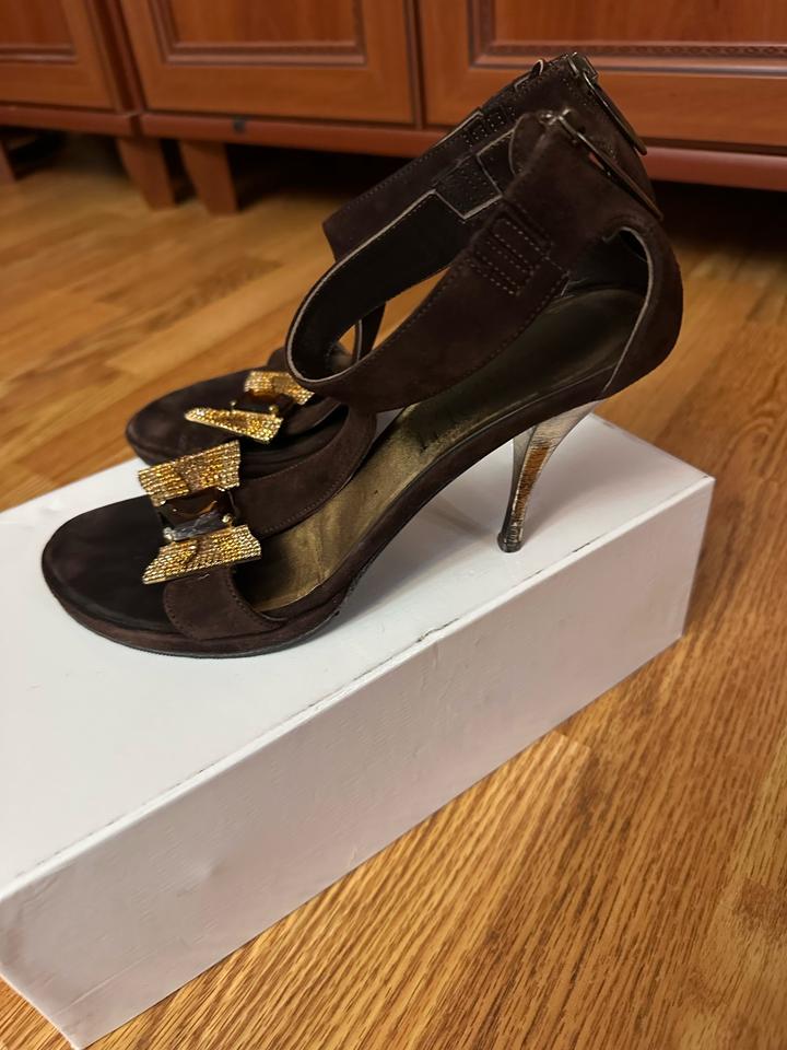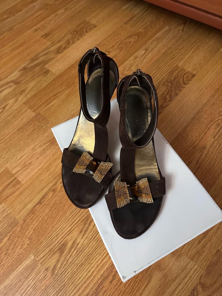 Итальянский бренд, натуральная замша, очень удобная колодка, коричневые,красивый блестящий бантик из камней, все камни целые Артикул: 448977