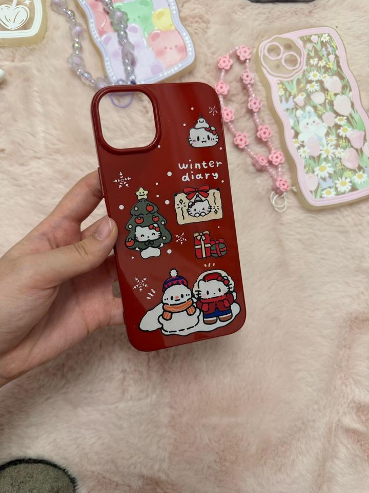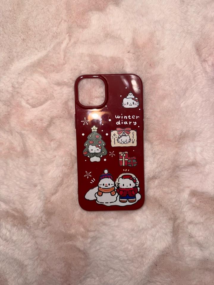 Чехол на iPhone 14 Plus. Новогодний с Хеллоу Китти. Цвет темно-красный Артикул: 449457