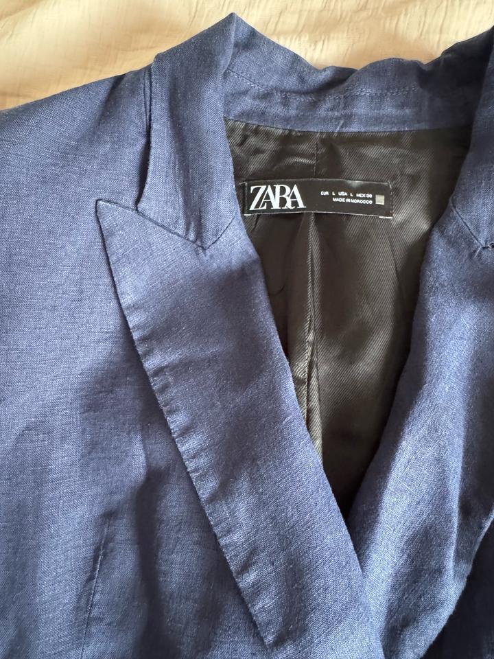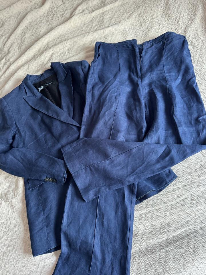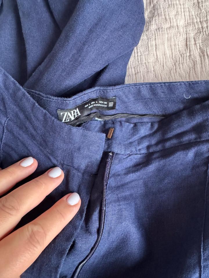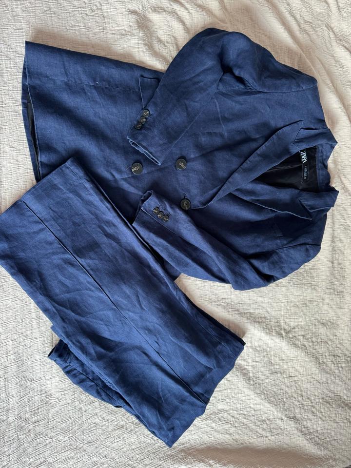 Материал лен, рр эл, темно синий. В отличном состоянии. Комплект зара. Требуется хим.чистка Артикул: 449853