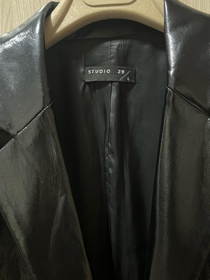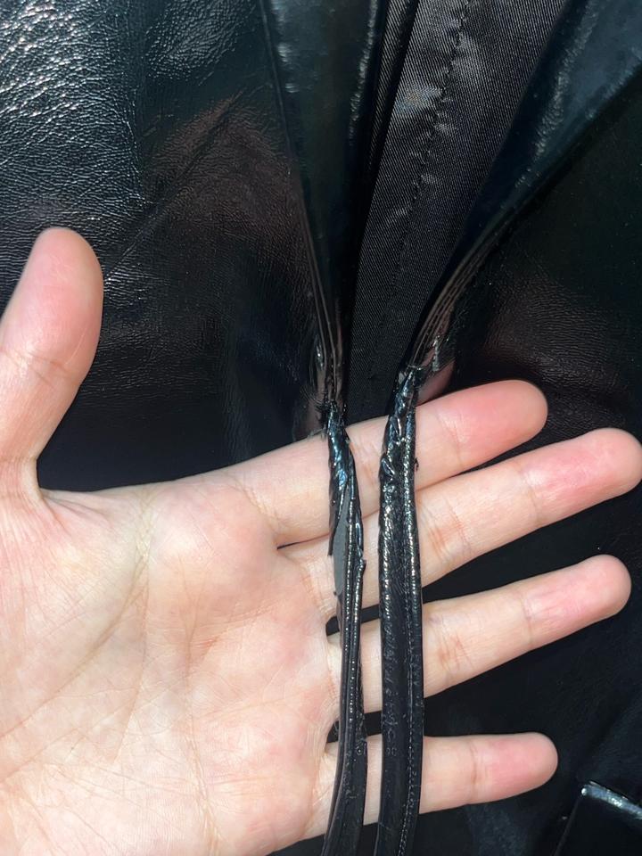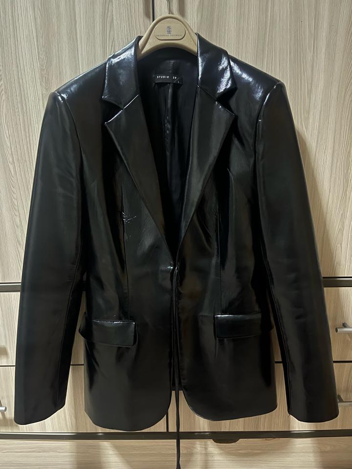 Лаковая экокожа Размер у бренда указан L, но на самом деле М Есть нюанс в виде завязок, кожа потерлась, именно на месте где идет завязка, на фото указано. В остальном состояние отличное Рекомендую глянуть сайт Studio29, стильные вещи по адекватной цене, в отличие от других российских брендов Артикул: 449869