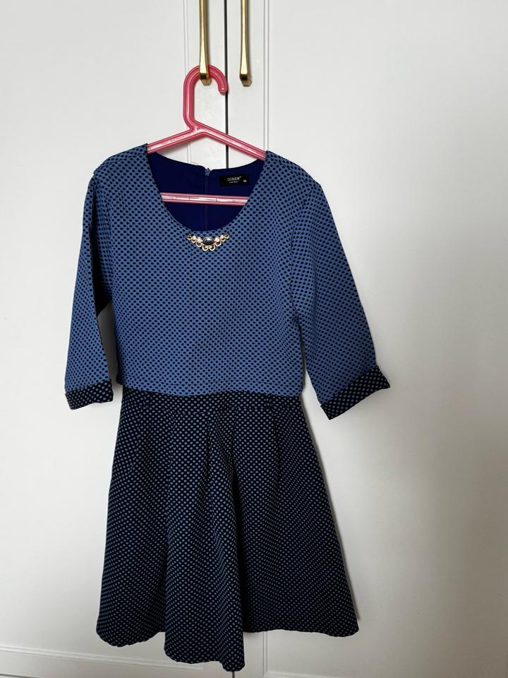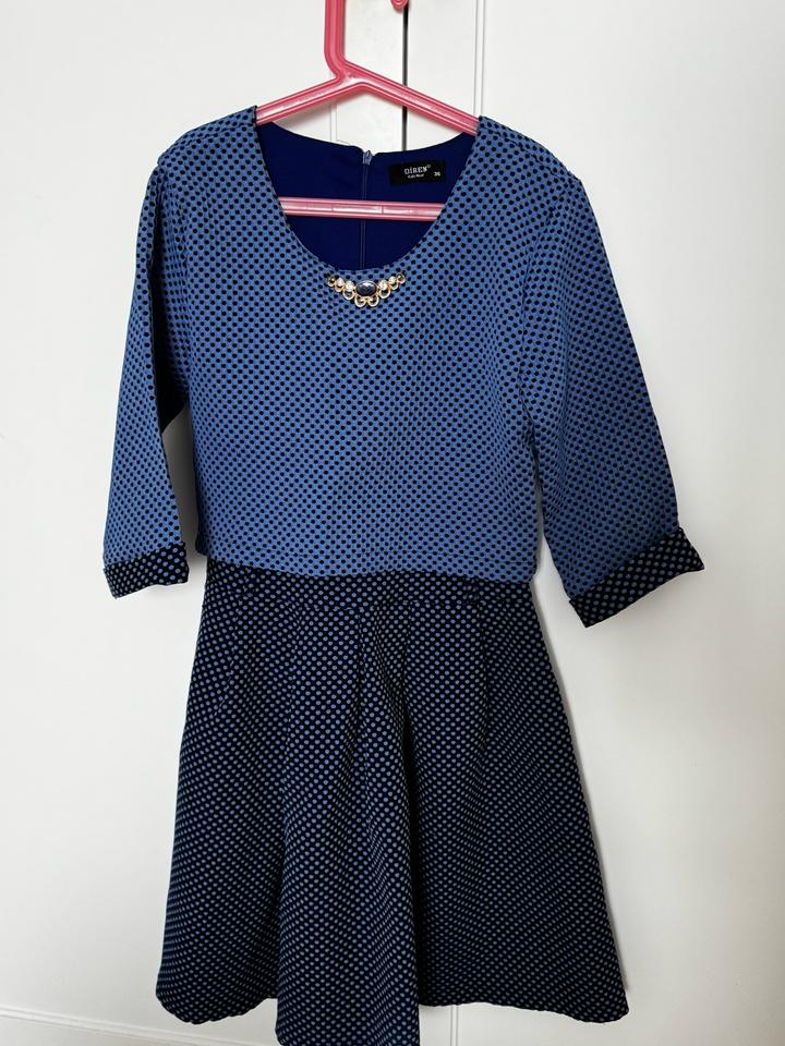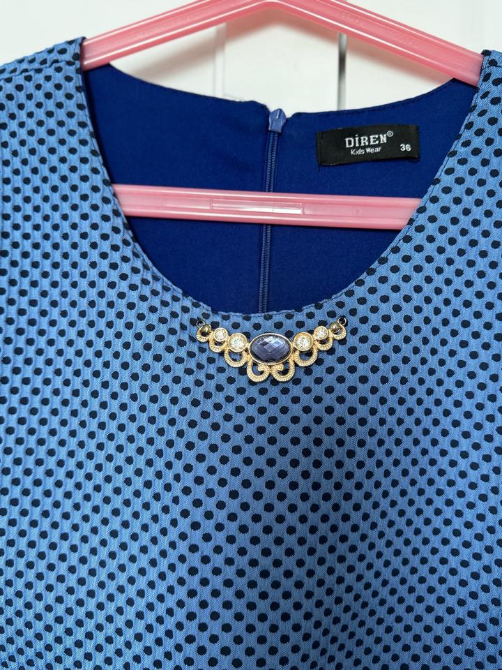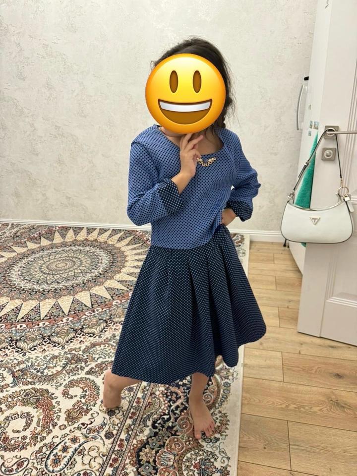 Нарядное темно-синее платье в крапинку. Новое, но без этикетки. Подойдет на 8-10 лет. Артикул: 450079
