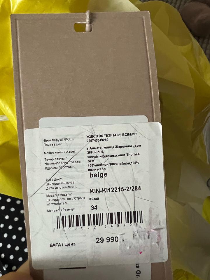 Товар находится в г. Астана