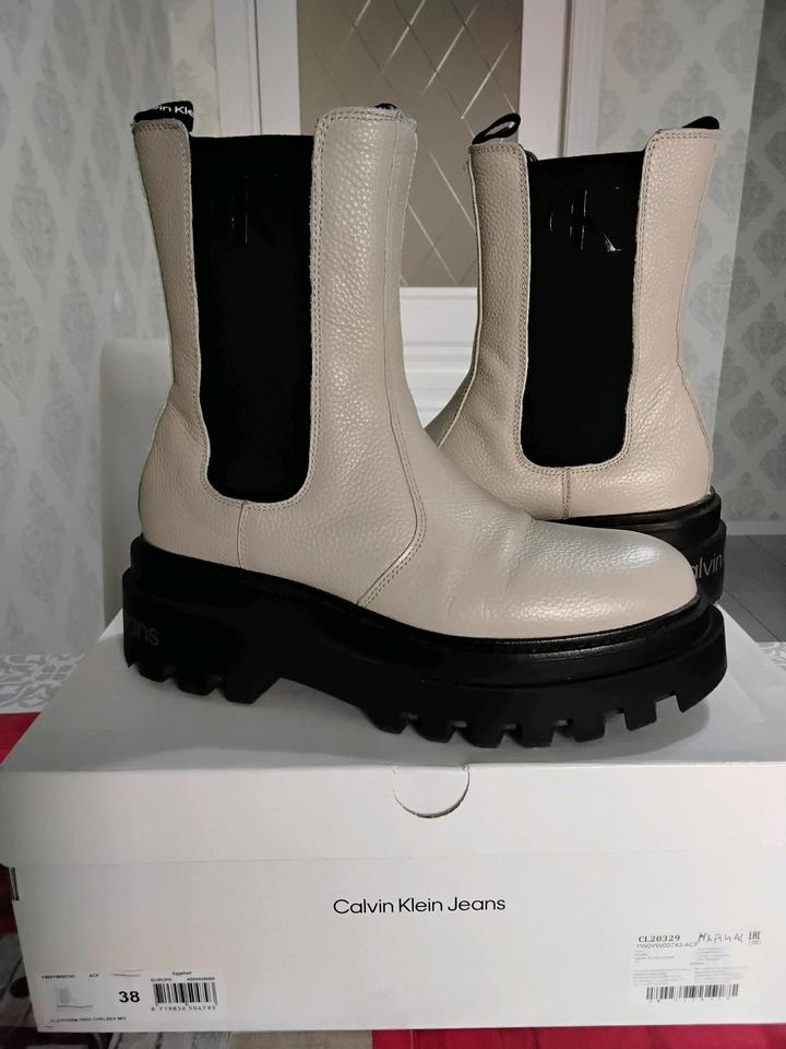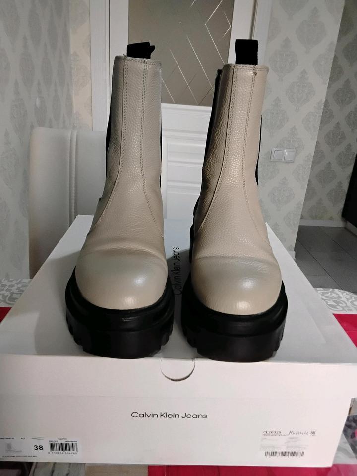 Челси Calvin Klein Jeans из натуральной кожи. Р. 39. Демисезонные, но в Алматы можно ходить зимой. Подошва мягкая и держит тепло. Дефектов нет. Данная модель мне не подходит. Артикул: 450340