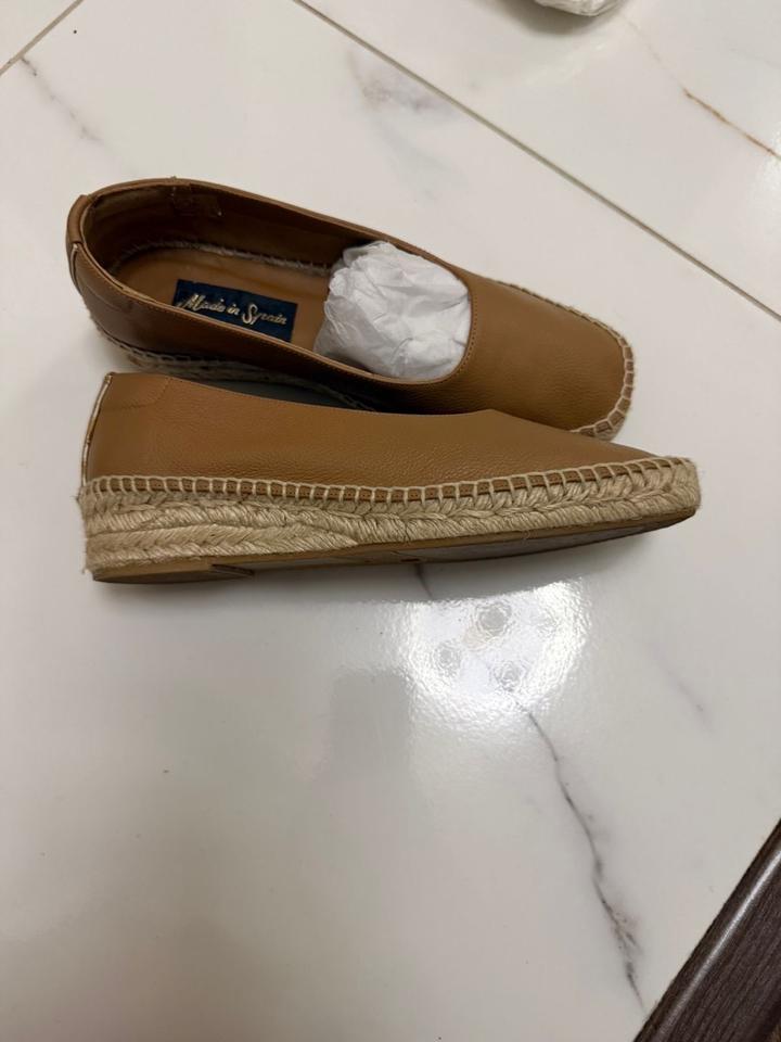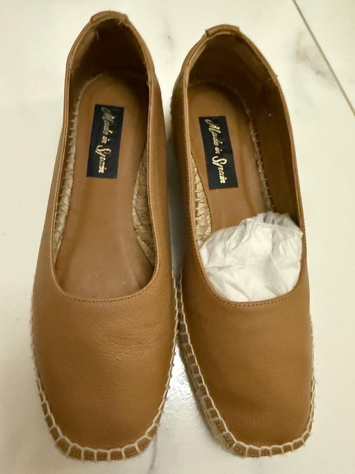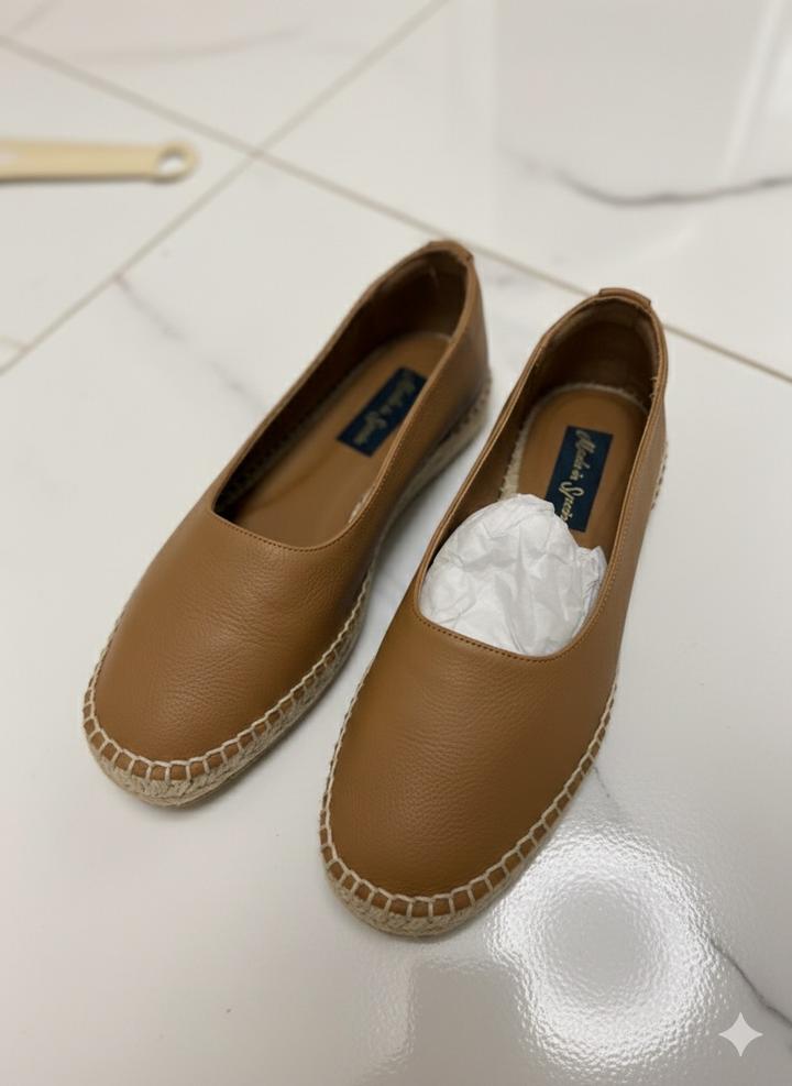 Новые кожаные эспадрильи лаконичного бежевого цвета. Артикул: 450587