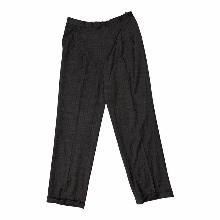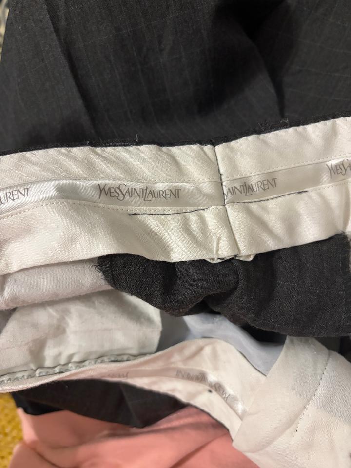В идеальном состоянии, оригинал от YSL. Штаны времен 1980-1990 годов. Цвет темно-серый/зеленый. 100% шерсть, замеры: Обхват талии: 87см Длина: 108см Обхват бедер: 80см Артикул: 450688