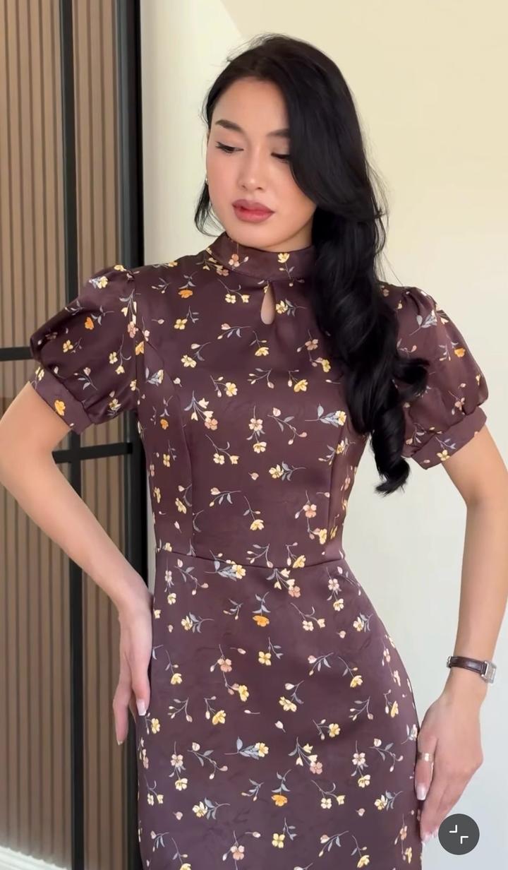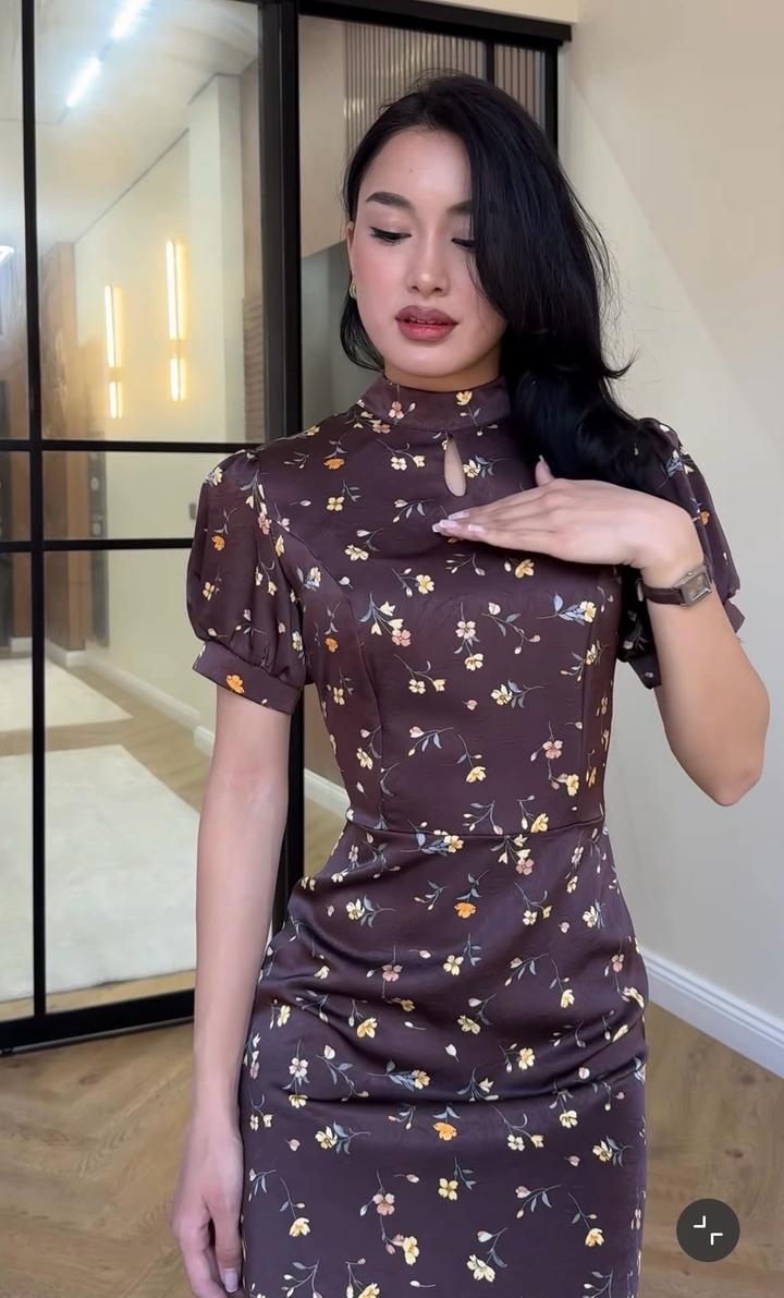 Male.storekz Платье коричневое атлас цветочный принтM
