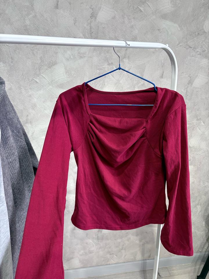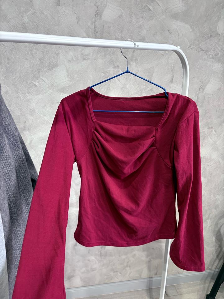 Кофта , бордовый цвет, чуть расклешенные рукава , квадратный вырез Артикул: 451035