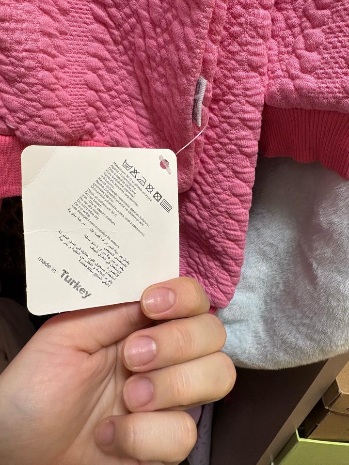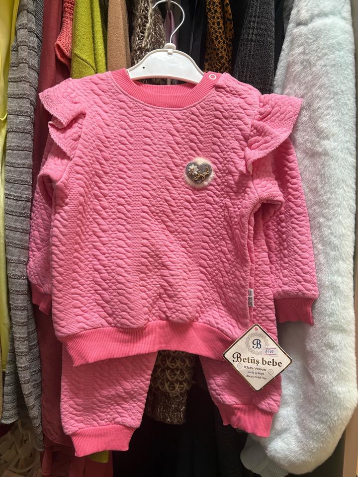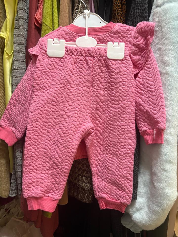Розовый костюм свитшот и штанишки. На весну или прохладное лето👍🏻размер пишут 12-18 месяцев. На 80-86 см думаю будет хорошо. Артикул: 451054