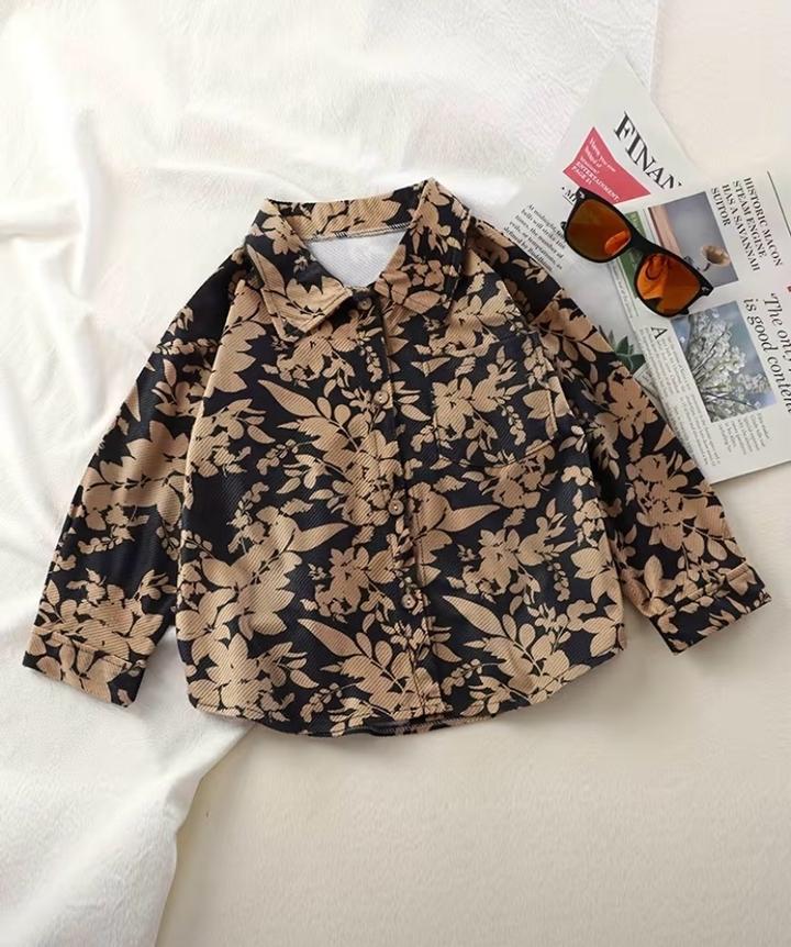 Детская цветочная повседневная рубашка с длинным рукавом, для мальчиков и девочек. Весенняя/осенняя верхняя одежда, размер 1-2 год Артикул: 451205