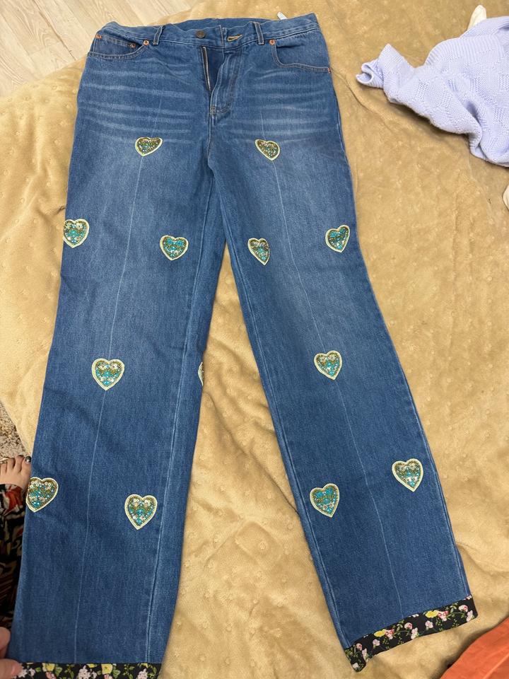 Новые шикарные джинсы от Valentino, в размере L, premium 1:1. Подойдут на рост 170-175 жалко резать, в нижней части брюк красивая каемка. Артикул: 451532
