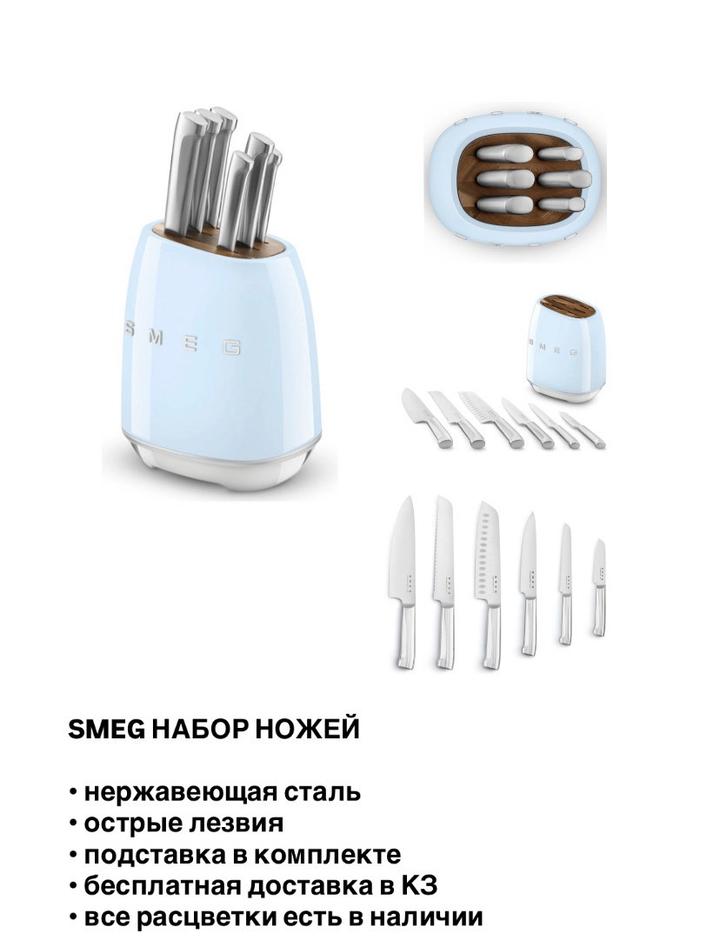 SMEG НАБОР НОЖЕЙ • нержавеющая сталь • острые лезвия • подставка в комплекте • бесплатная доставка в КЗ • все расцветки есть в наличии Артикул: 451608