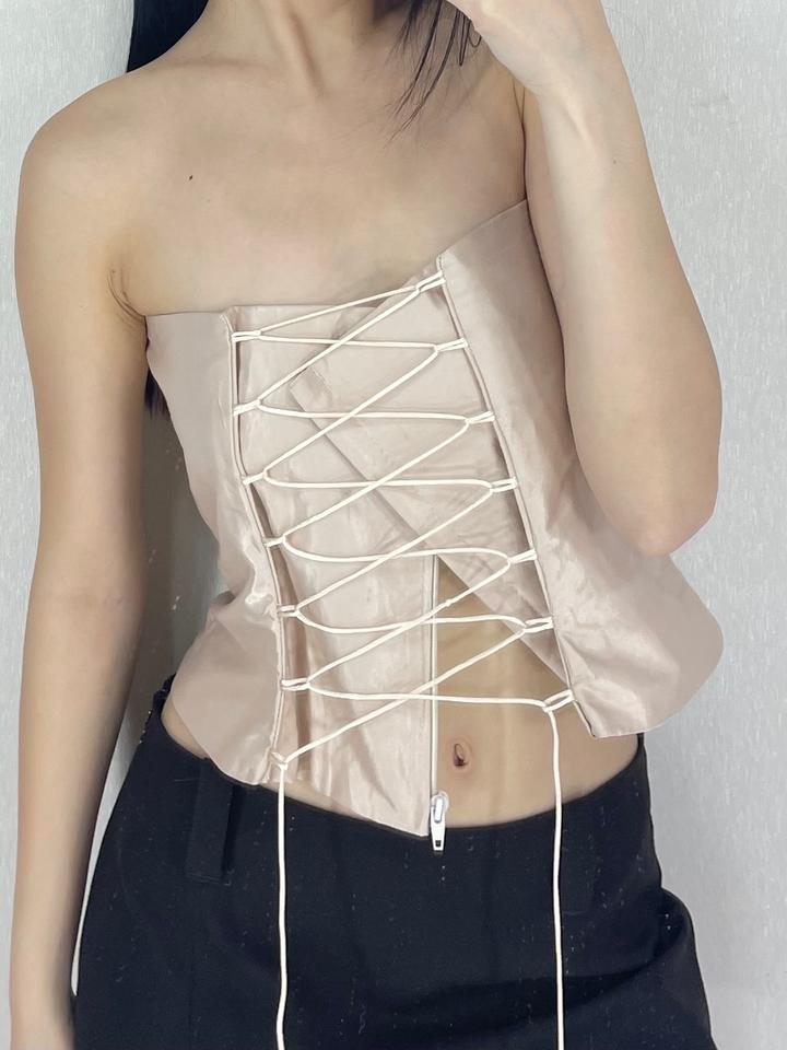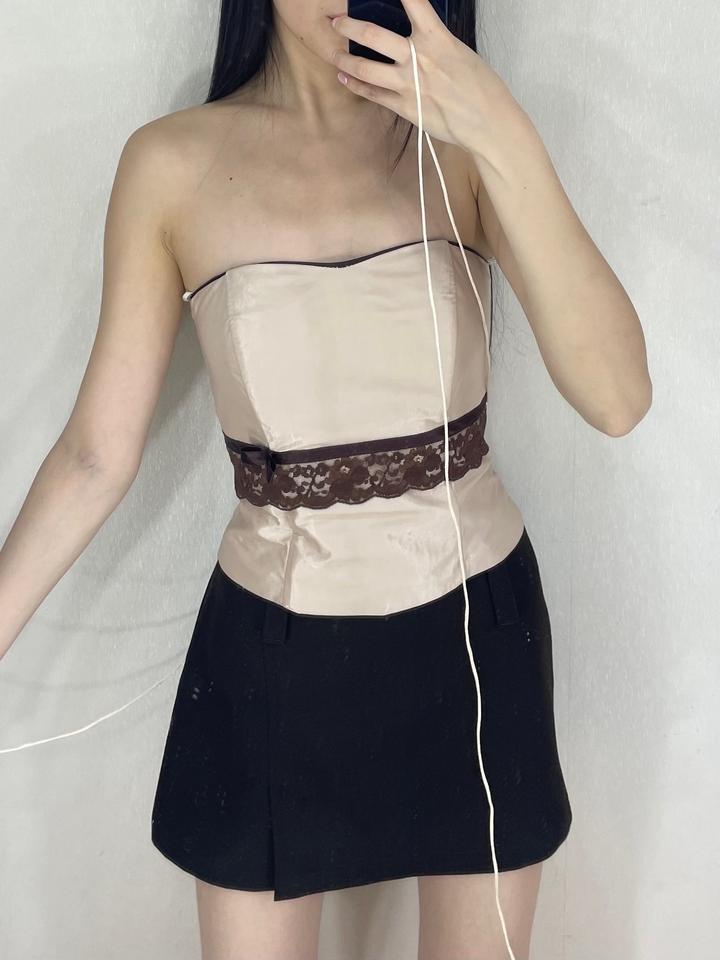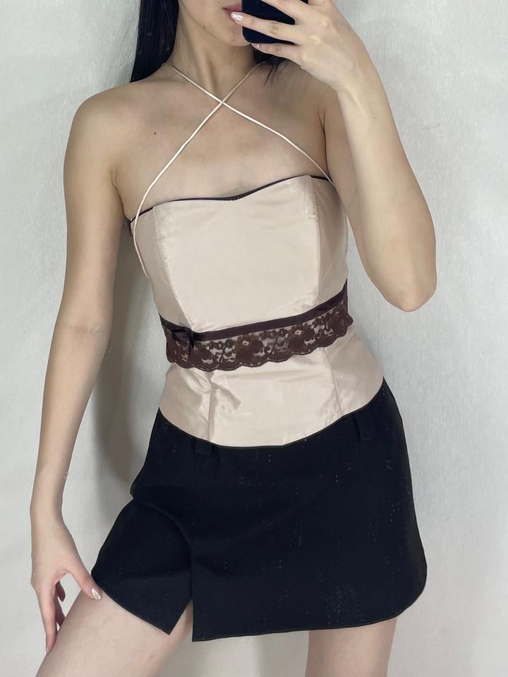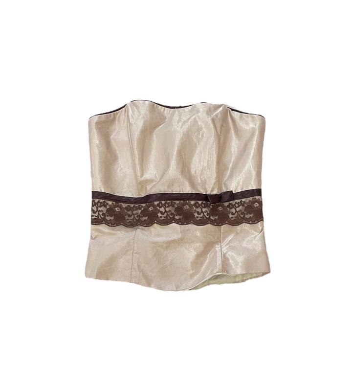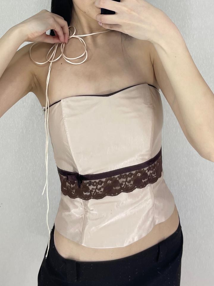 Винтажный атласный корсет с кружевом и бантом Размер: S Артикул: 451626