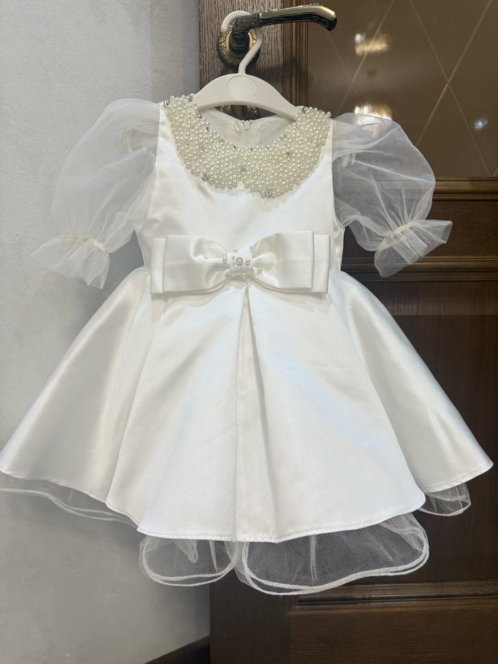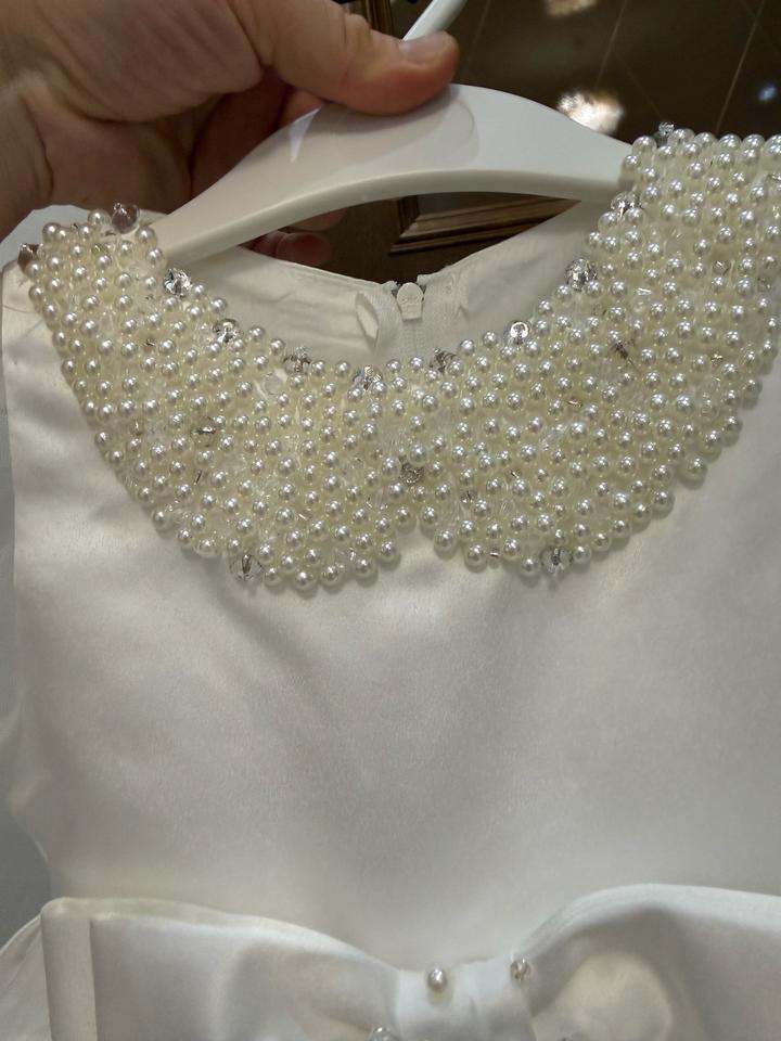 Платье атласное с жемчужным воротом, надевалось лишь раз на фотосессию, размер 80-86 Артикул: 451945