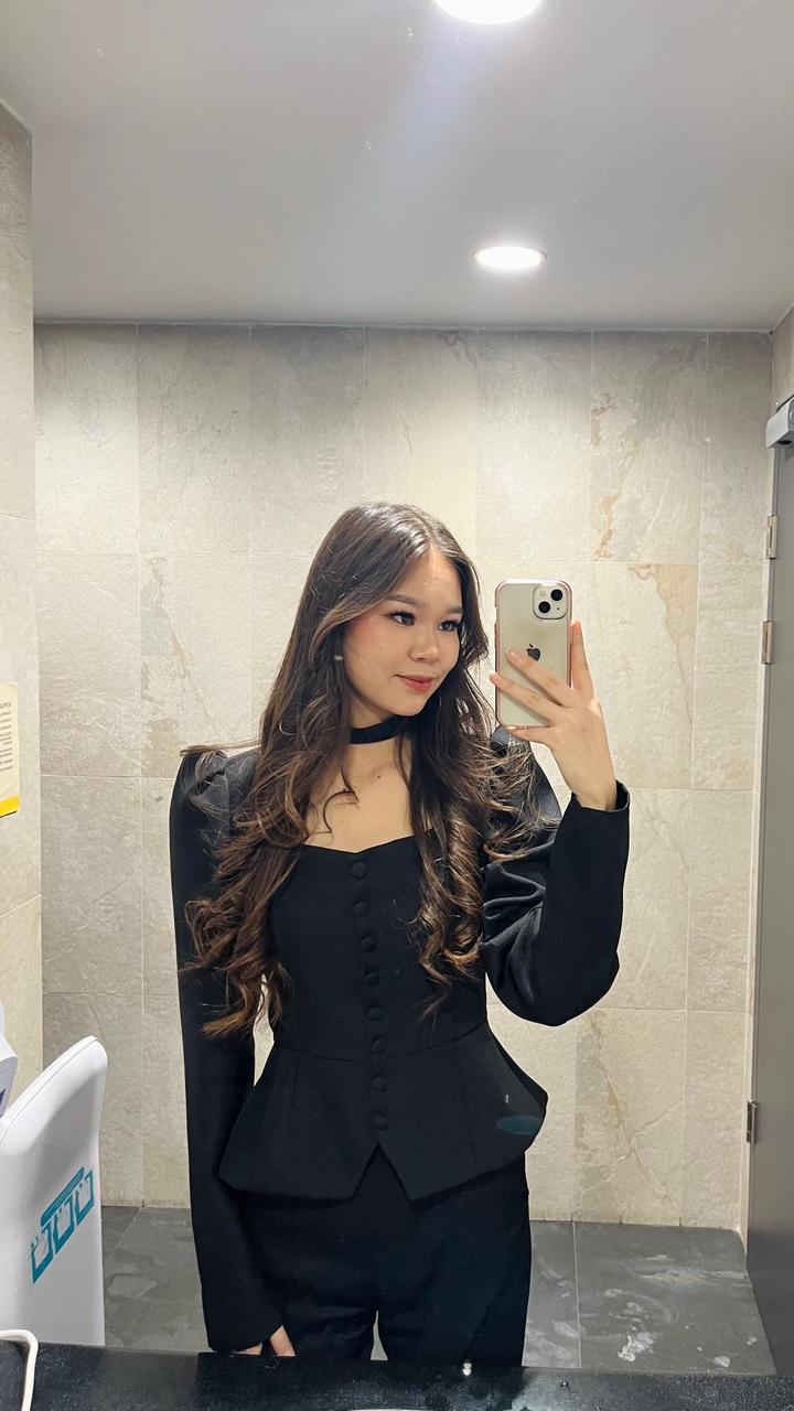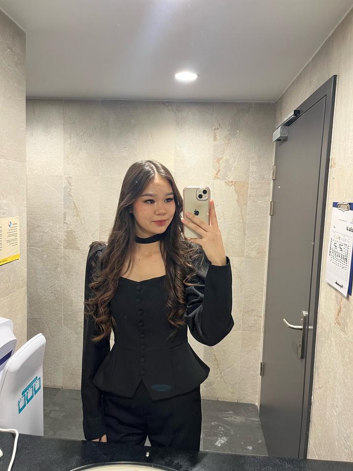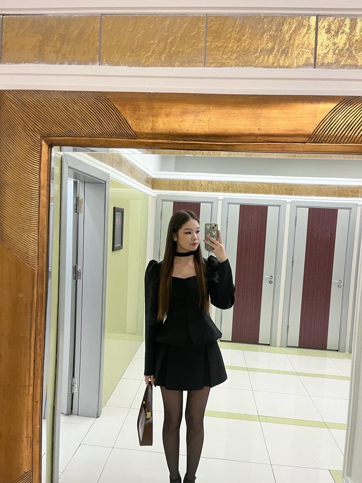 Черный костюм с приталенным верхом, длинными рукавами и декоративными пуговицами спереди. Есть чокер-воротник, смотрится дорого и эффектно. Артикул: 452088