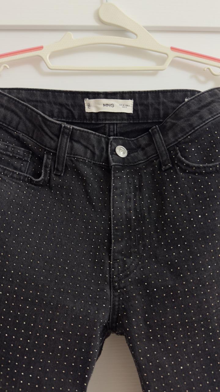 Черные джинсы от манго со стразами Посадка средняя Пишите отправлю живое видео Артикул: 452132
