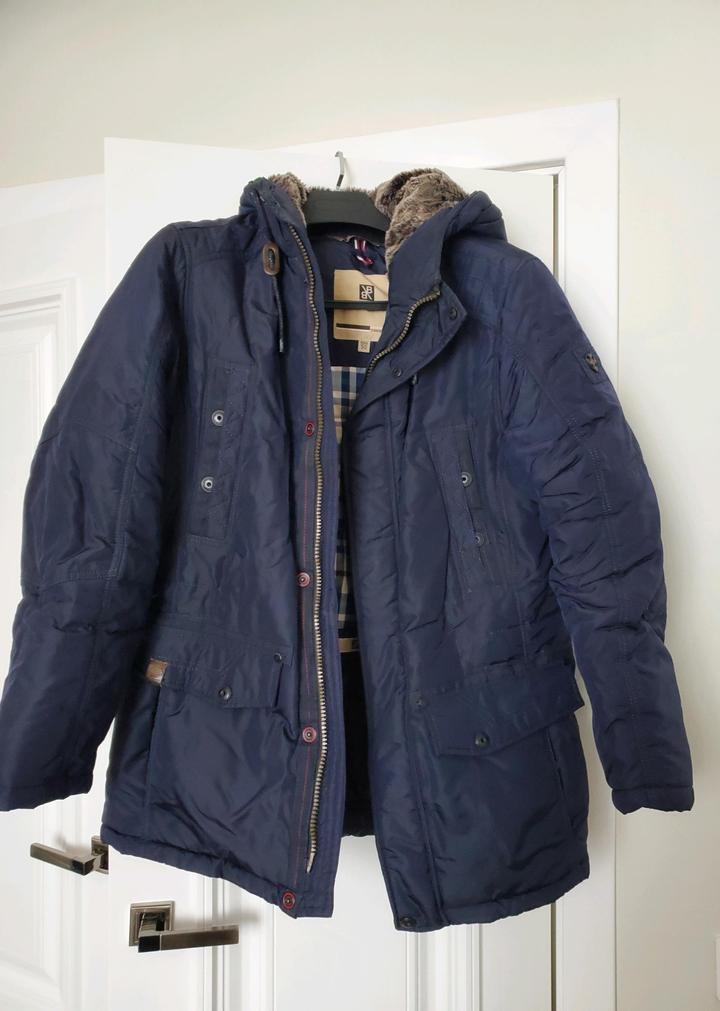 Мужская темно-синяя зимняя куртка с капюшоном, в хорошем состоянии Артикул: 452170