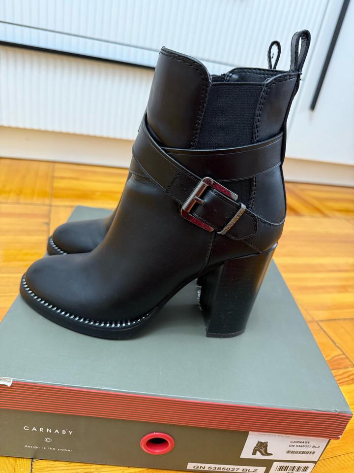 Стильные Ботильоны в чёрном цвете, в отличном состоянии, к сожалению не подошел размер. Очень удобная колодка. От бренда CARNABY. Торг уместен. Артикул: 452174