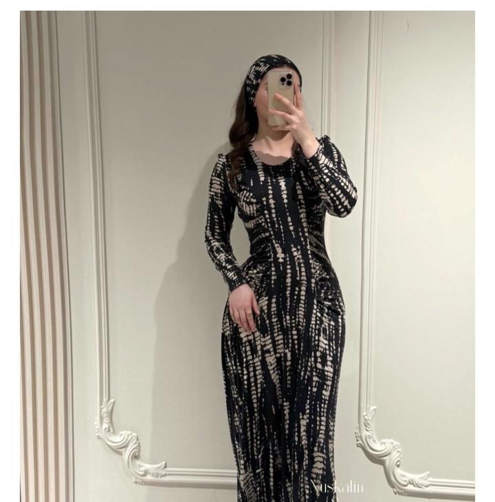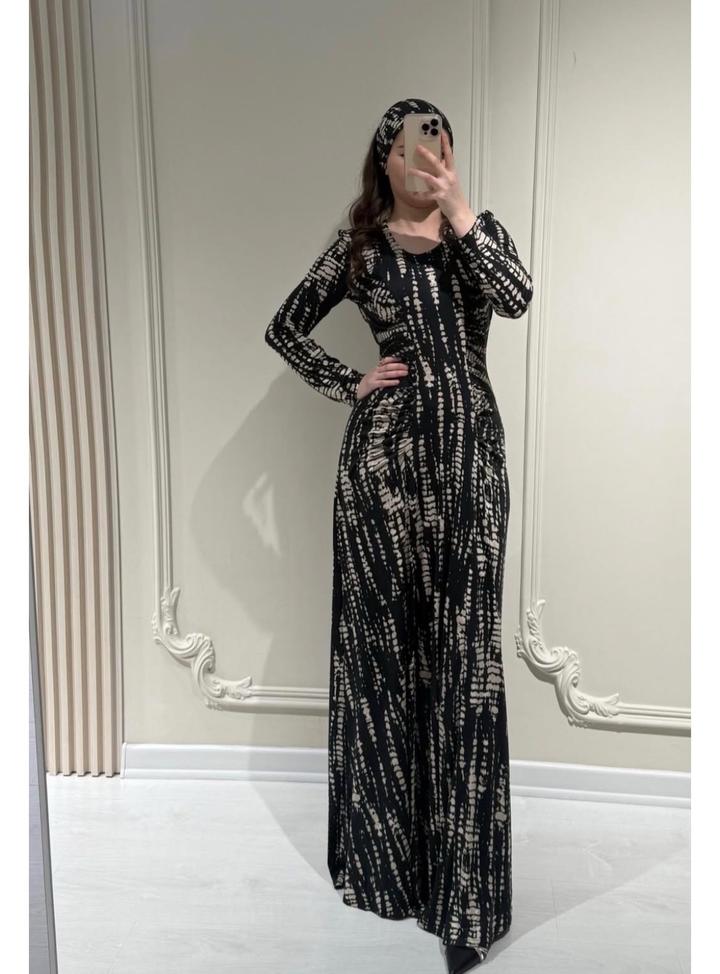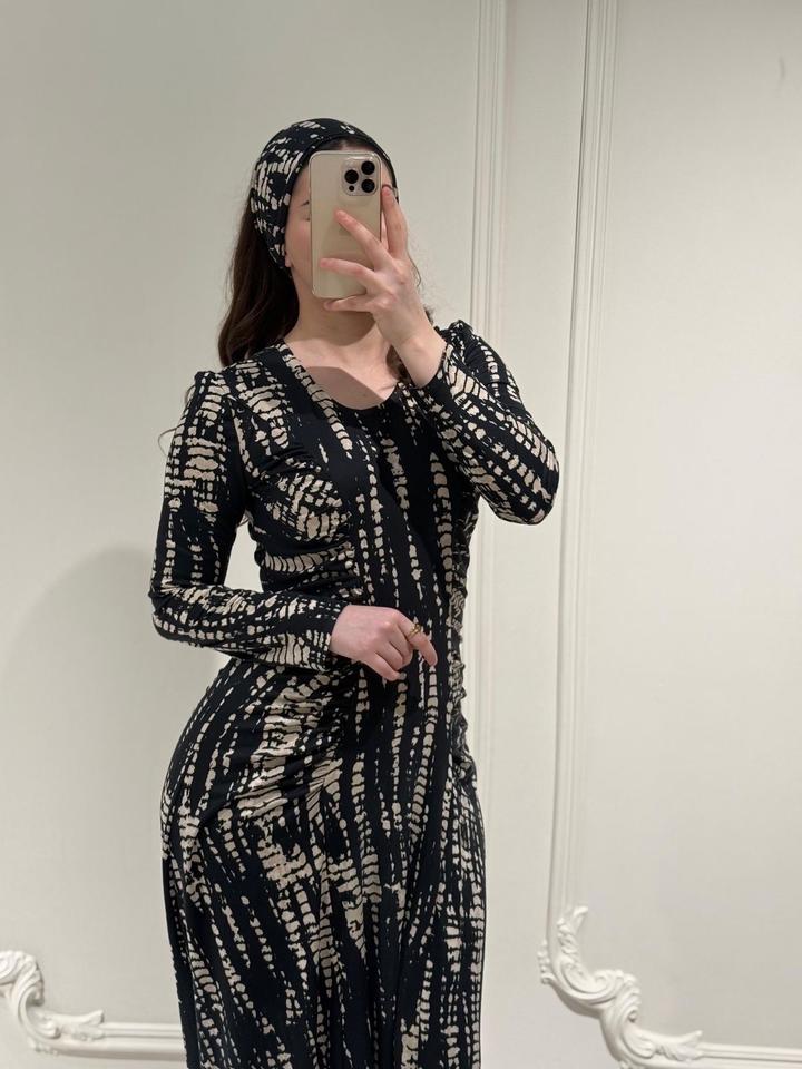 Черно бежевое платье со сборками. Отшивалось в Чечне. Размер М Артикул: 452266