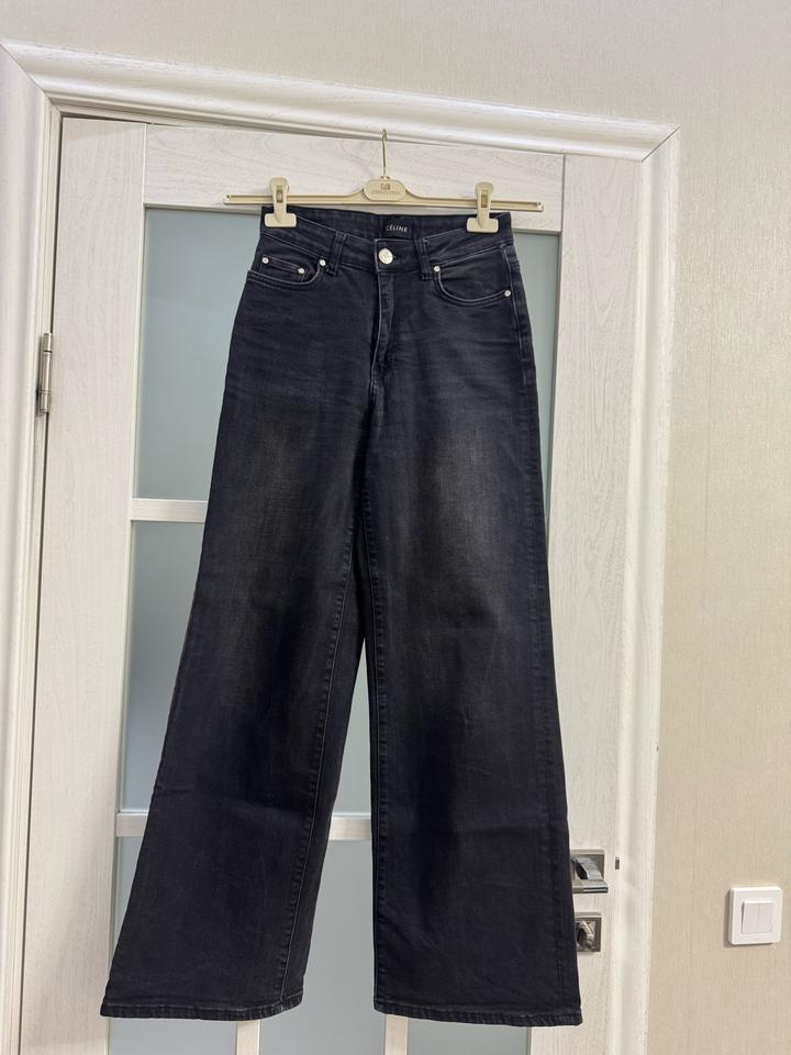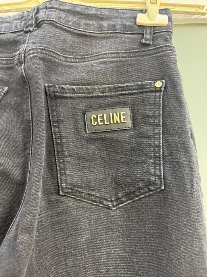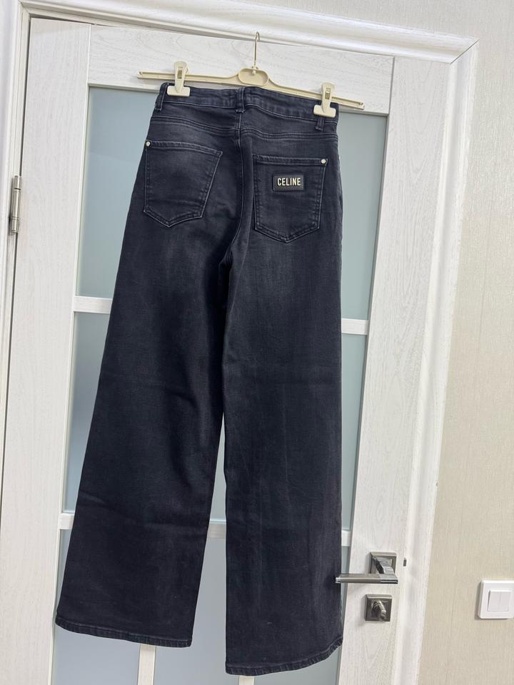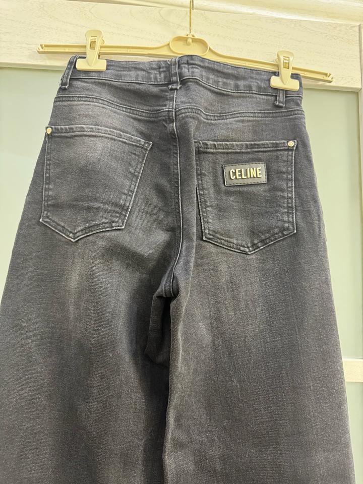 Черные джинсы с высокой талией и широким кроем от бренда Celine. Артикул: 452277