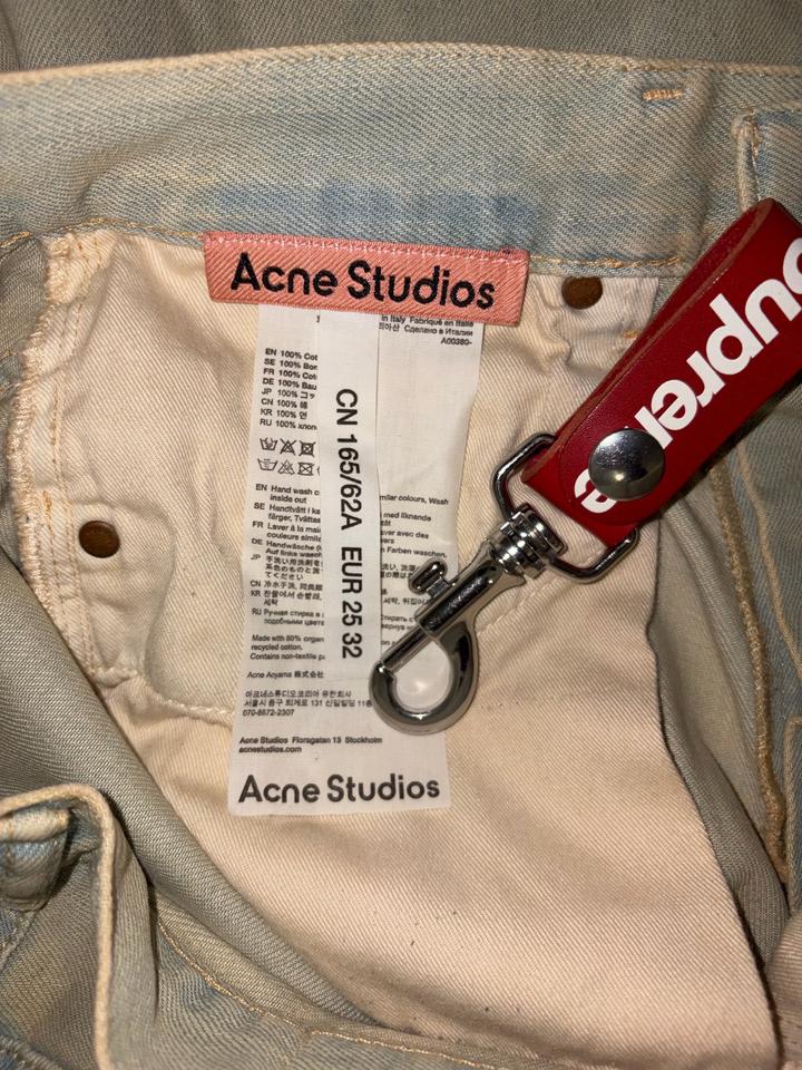 В хорошем состоянии, унисекс, без дефектов, только следы носки. В кремово-бежевом цвете, есть кожаная пришивка сзади талии. Замеры: Талия — 68 см Бёдра — 89 см Высота посадки — 30 см Длина по внутреннему шву — 77 см Ширина низа штанины — 50 см Артикул: 452380
