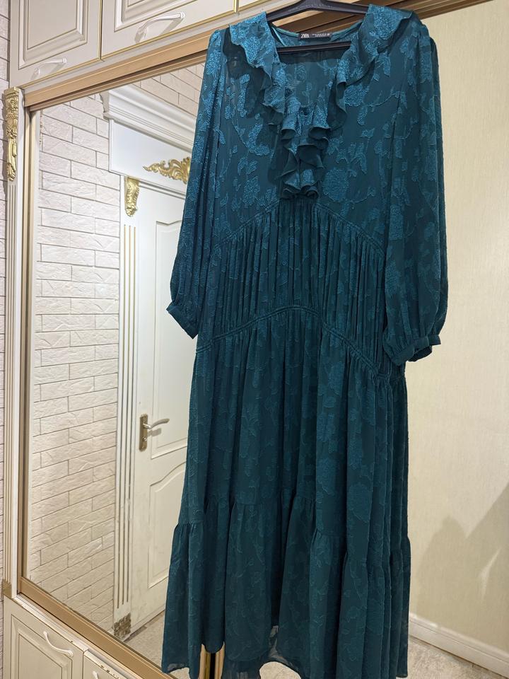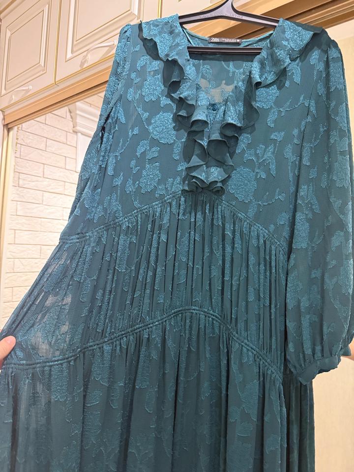 Жакардовое бирюзовое платье ZaraXS