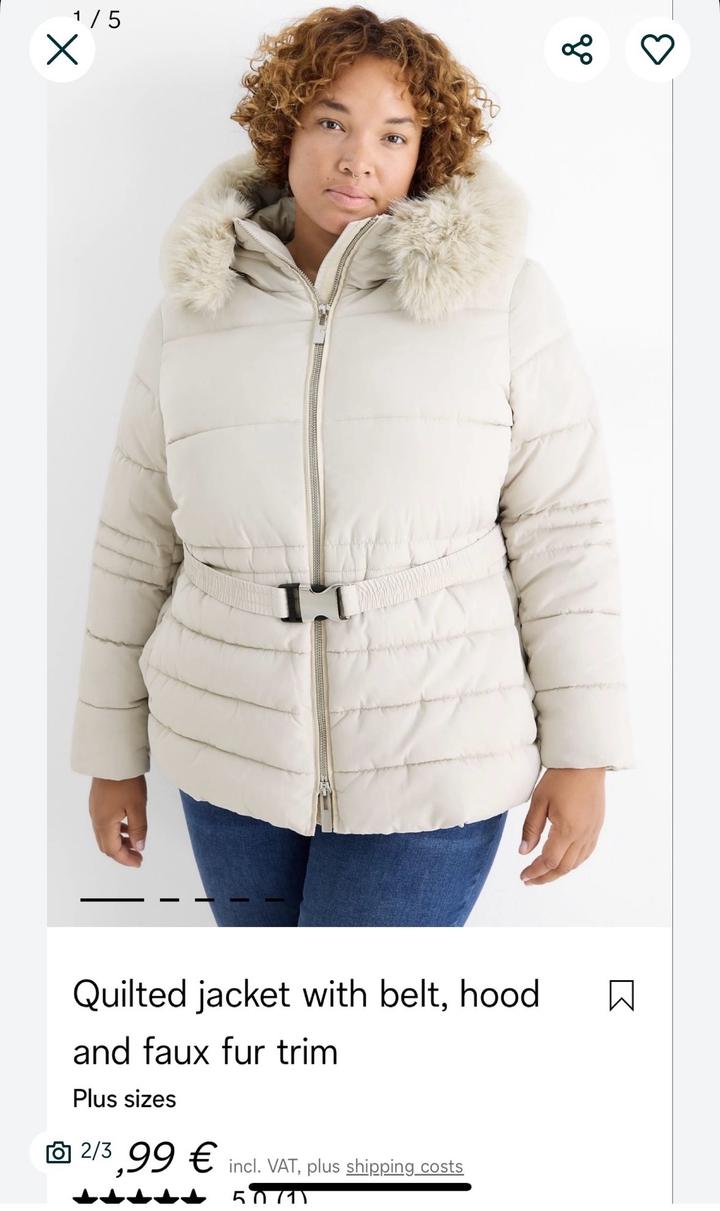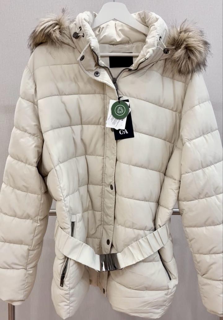 Тёплая куртка, расцветка айвори, молочная Бренд C&A, Нидерланды Размер 52 Европейский, наш 58 Мех искусственный, съемный Идеальное европейское лекало. В наличии новая одежда из Европы. Артикул: 453213
