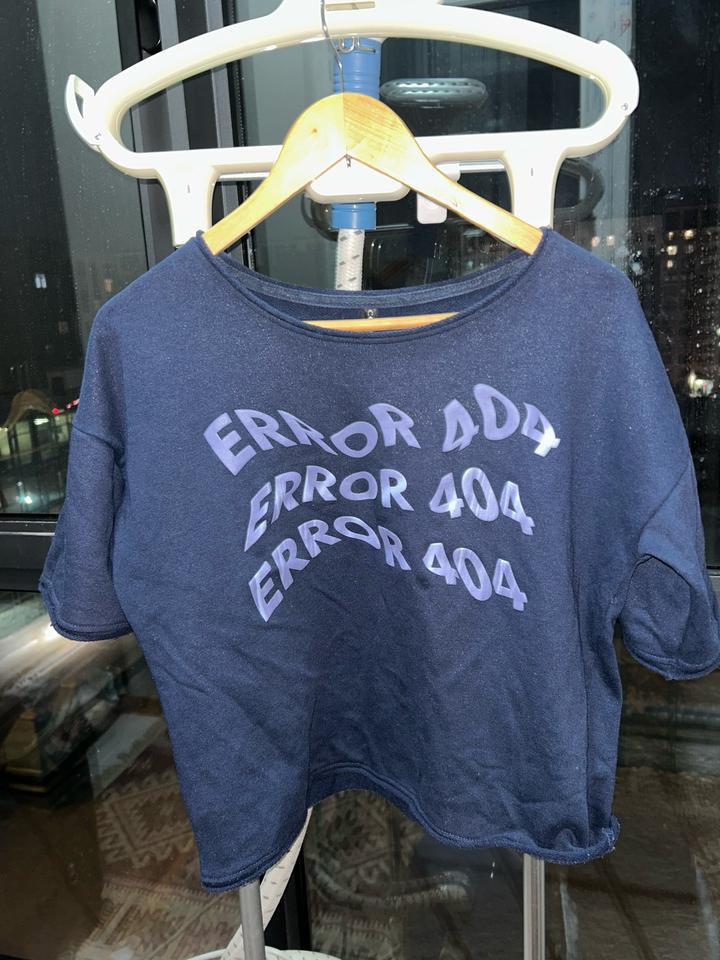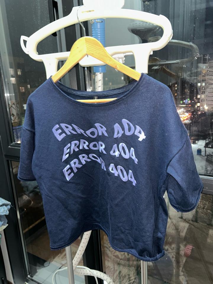 Стильная укороченная футболка тёмно-синего цвета с оригинальным принтом Error 404. Свободный крой, мягкая ткань и трендовая длина — идеально для повседневных и street-style образов. Состояние отличное Артикул: 453396