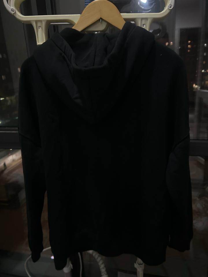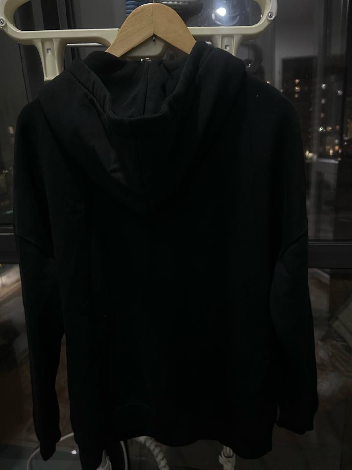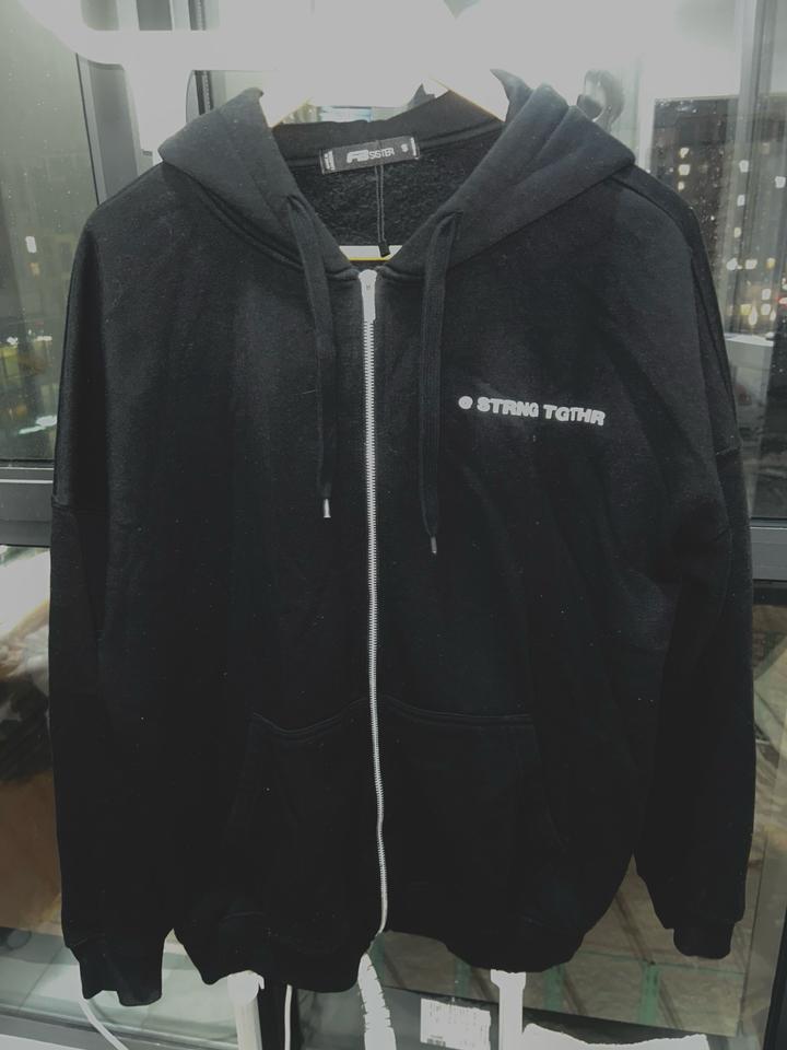 Удобное худи чёрного цвета на молнии с капюшоном и карманами. Минималистичный дизайн с надписью STRNG TGTHR, мягкая ткань и свободный крой — отличный вариант для повседневной носки. Состояние отличное. Артикул: 453398