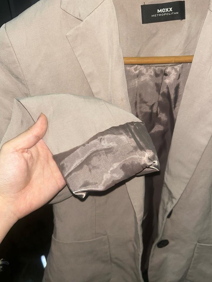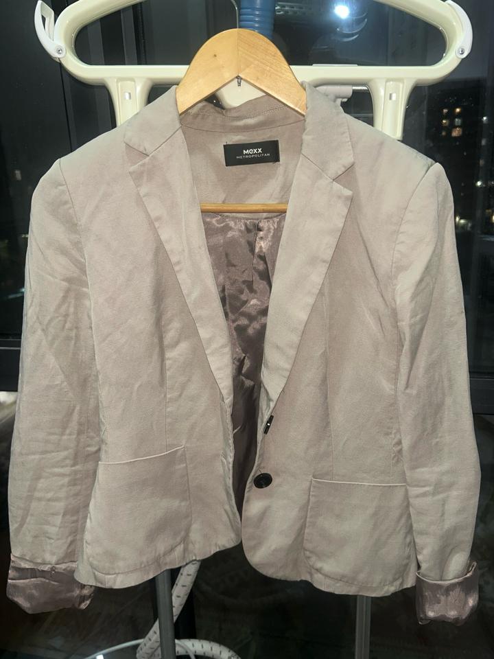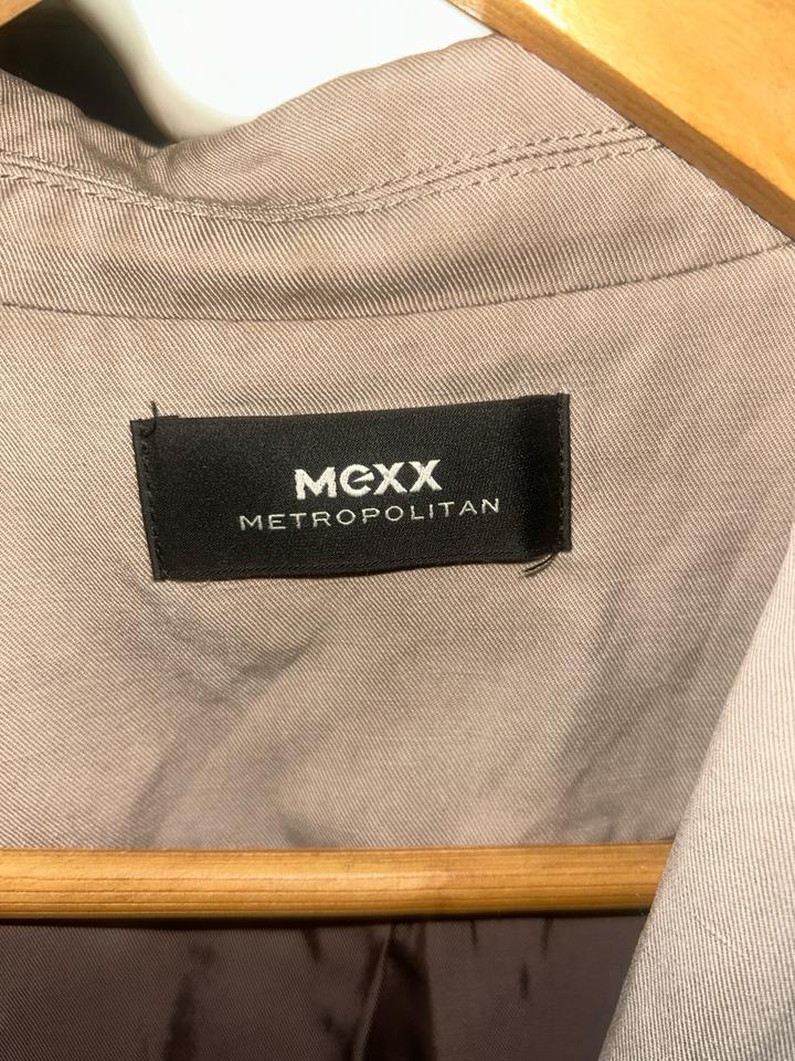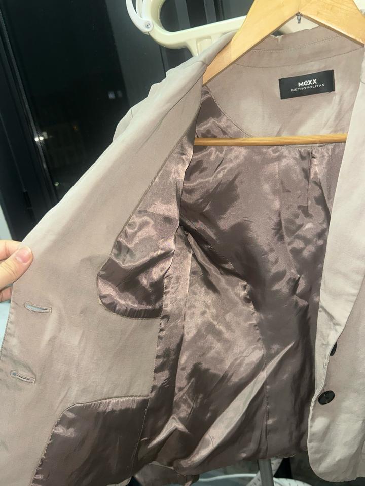 Стильный приталенный пиджак бежевого оттенка от Mexx. Классический крой с лацканами, аккуратные карманы и подкладка внутри. Отлично подойдёт для офисных образов и повседневных сочетаний. Состояние хорошее. Артикул: 453405