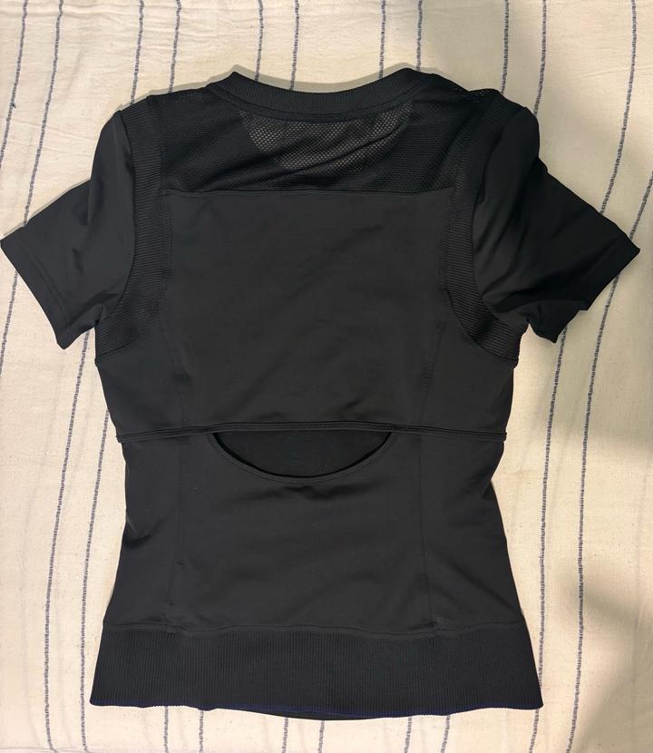 Черная спортивная футболка , состояние новой вещи, дефектов нет, подойдет для s - m, мой размер s, комфортно прилегает, вырез сзади делает футболку необычной, посадка красивая и главное удобная. Цена на сайтах от 44к(без учета доставки), отдаю за очень низкую цену, так как сейчас ношу только лонгсливы. г. Алматы, р. Алмалинский ( Төле би/ Байзаков) Артикул: 454382