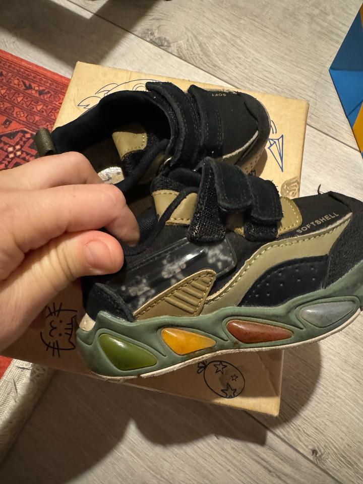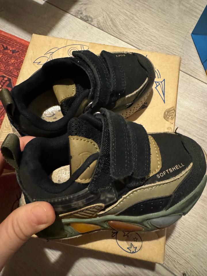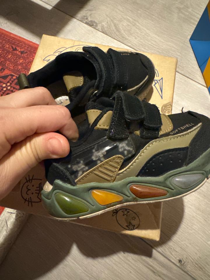 Кроссовки супер качественные, носили 1 сезон. Снизу все горит при ходьбе. Материал soft shell, пропускает воздух и не мокнет под дождем. Таблицу размера приложила. Состояние отличное, только стельку стирала, снизу силикон чуть стерся. Внешне все супер. На сейчас и летние вечера будет как раз. Артикул: 454525