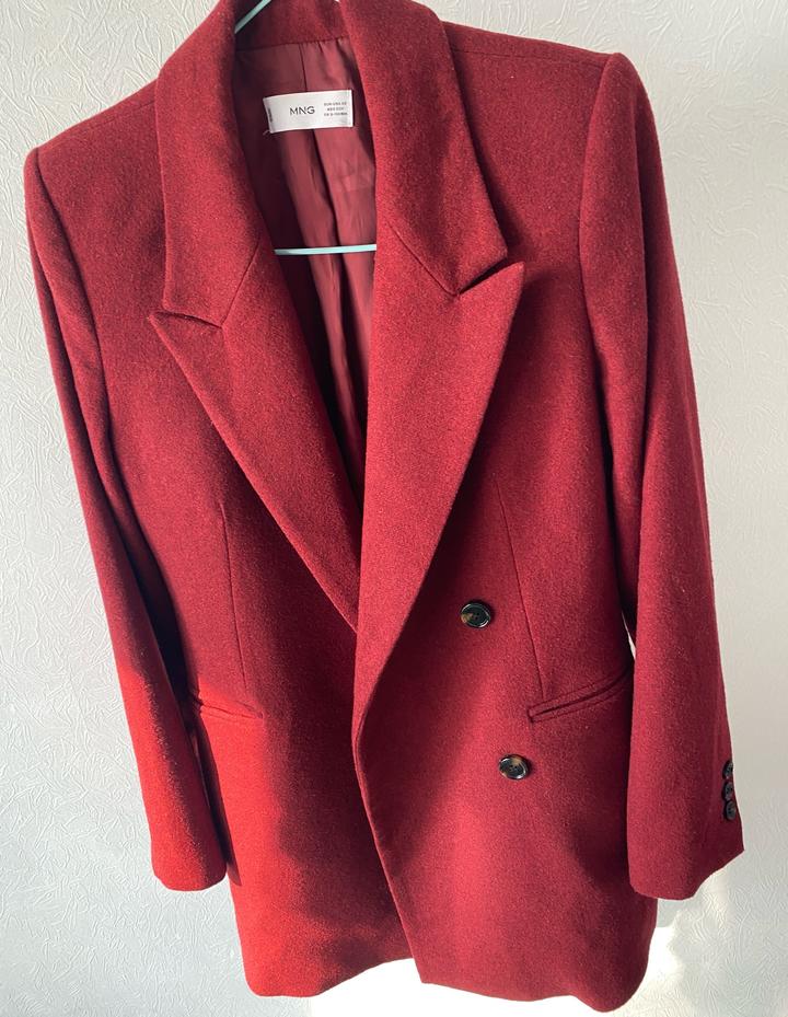 Стильный пиджак Mango в насыщенном бордовом цвете ❤️ Состав натуральная шерсть. Состояние отличное без дефектов. Подойдет на размер XS,S. Артикул: 454596