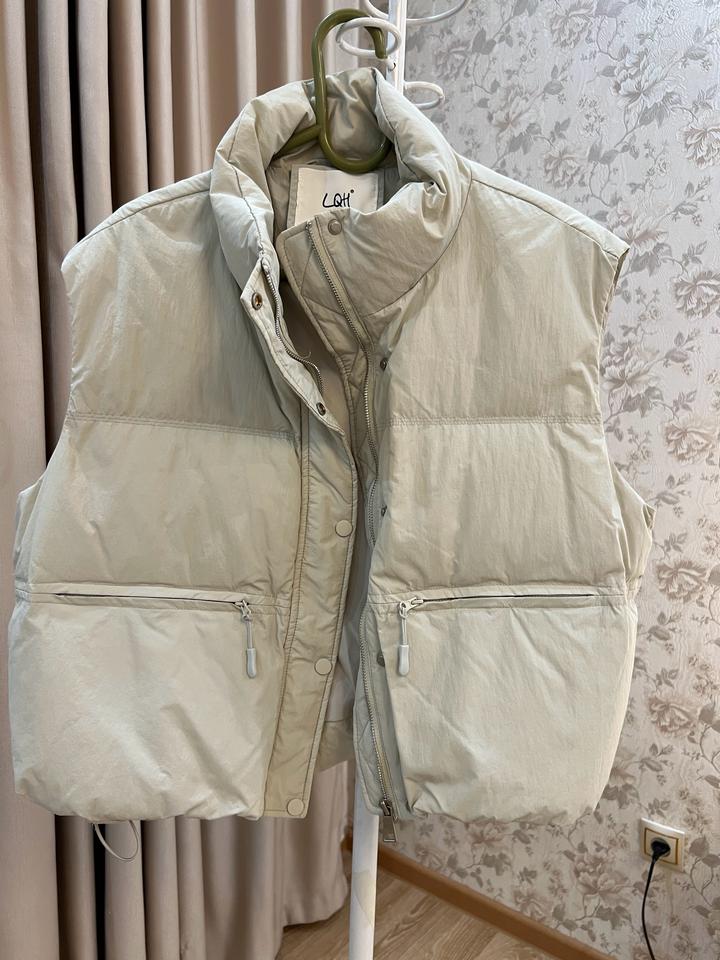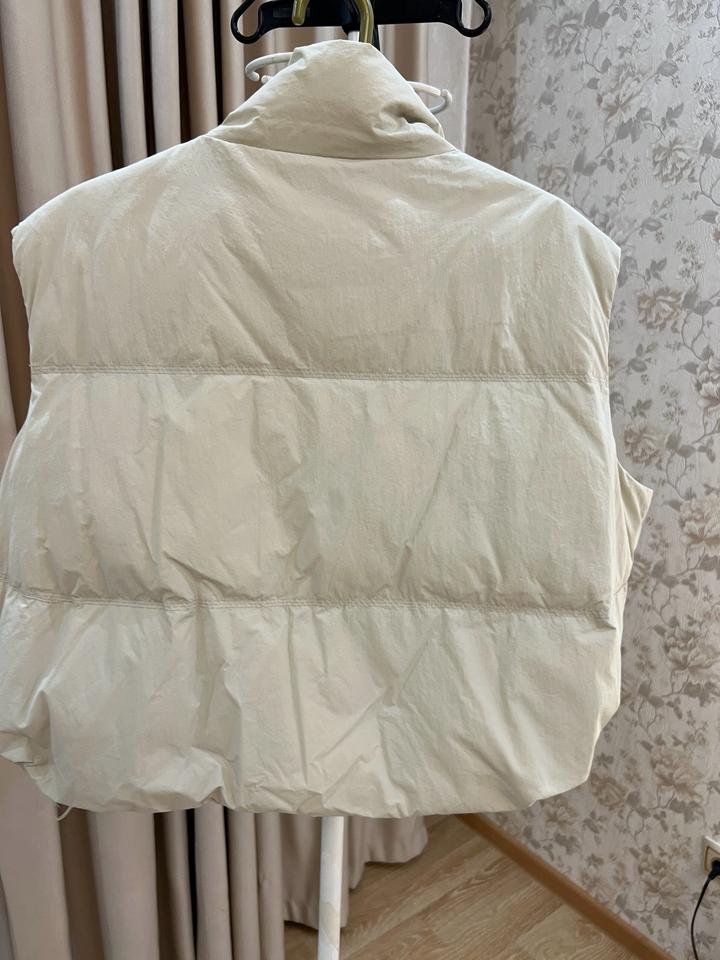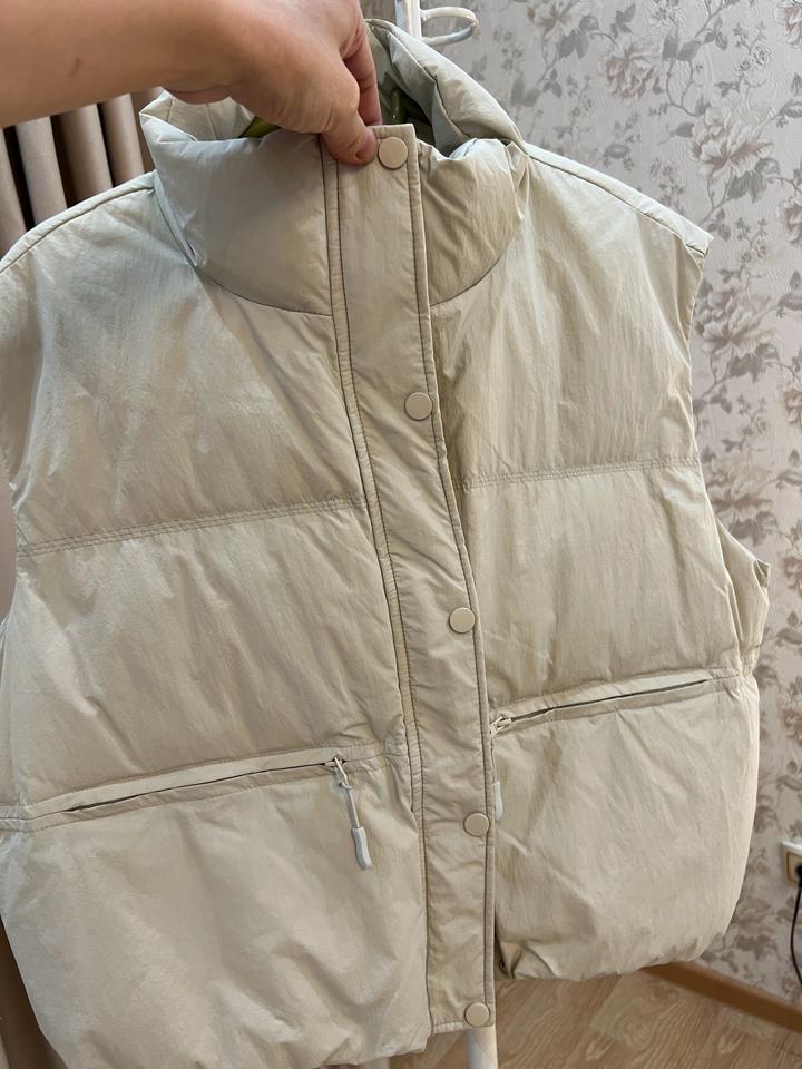 Очень красивая жилетка Стиль oversize В самом модном цвете светло сером Размер s-m (44-46) Наполнитель: белый гусиный пух ( содержание 85%) Очень легкая, но теплая) Купила недавно- в январе в Гонконге Одела всего один раз Я не ношу жилетки поэтому продаю Торга нет, жилетка топ Артикул: 455015