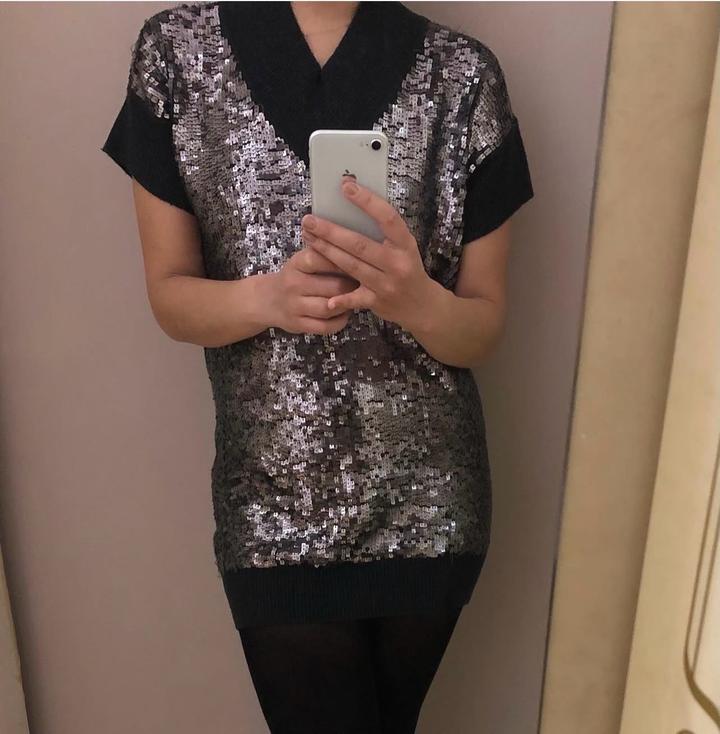 Свитер, туника от Parosh, дорогой люкс бренд. Состав 100 % кашемир спереди ушитый пайетками. Хорошо смотрится с лосинами так как по длине прекрывает ягодицы ☺️ Артикул: 455112