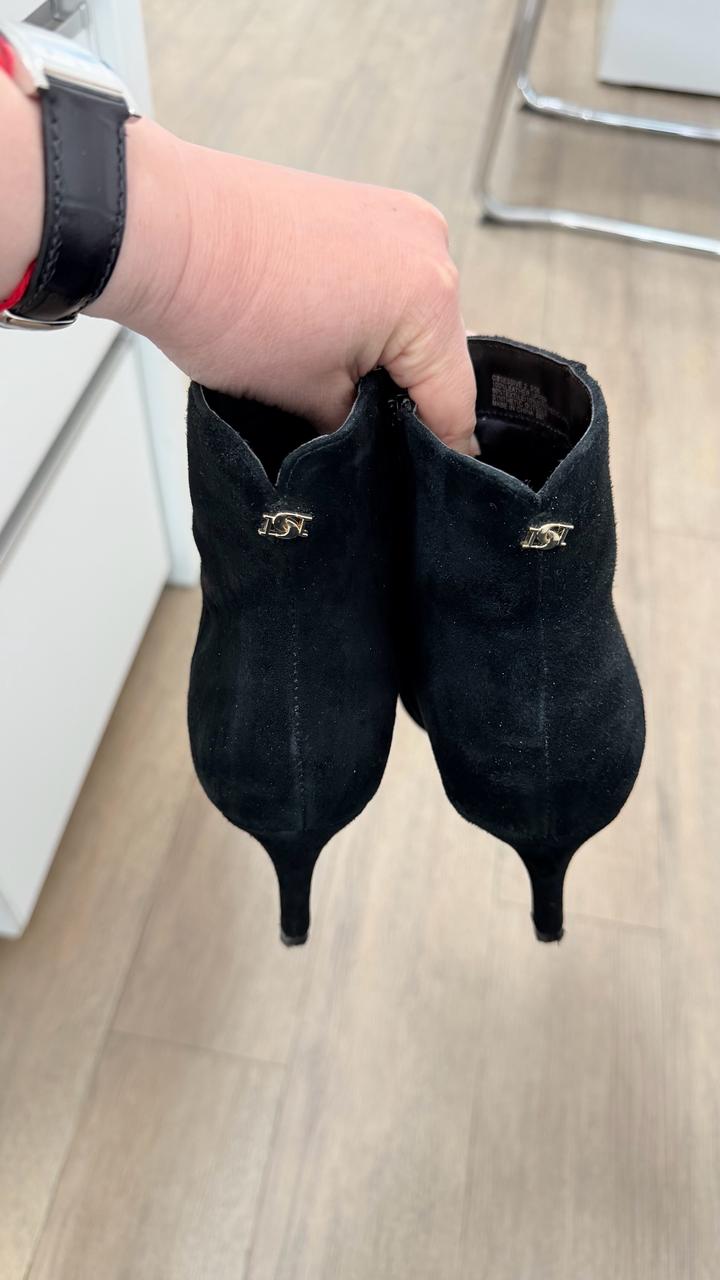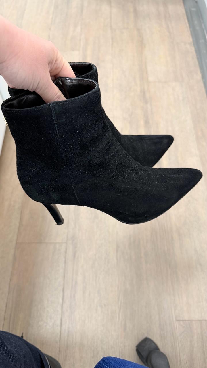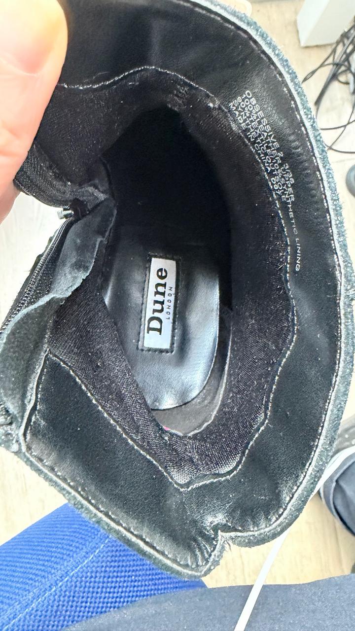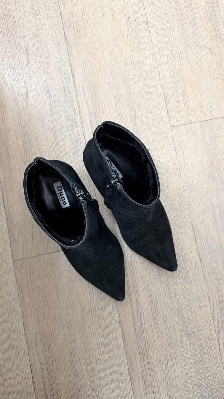 Черные замшевые ботильоны британского бренда Dune London, в отличном состоянии, надевались 2-3 раза на выход. Удобный каблук, подходит практически под все - брюки, джинсы, платья, юбки. Артикул: 455720