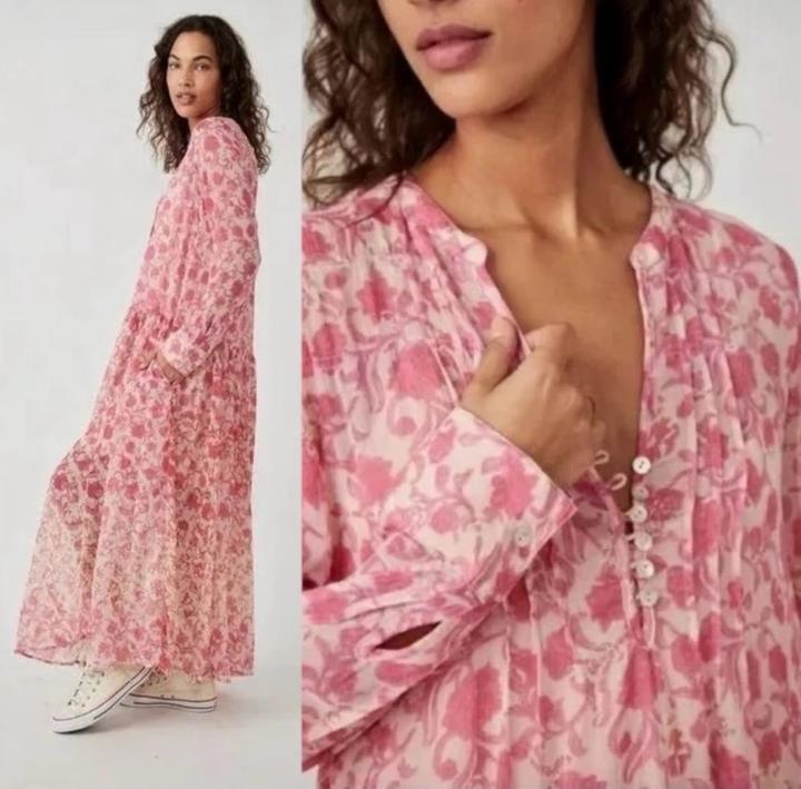 Платье макси, очень удобное и легкое, невесомое, подойдет для беременных. С комбинацией внутри, покупала в Америке, не носила, комбинация где то до колен.Платье-макси Free People See It Through отличается полупрозрачным дизайном и свободным силуэтом. Длинные рукава, застежка на пуговицах спереди и винтажный цветочный принт дополняют образ. • Круглый разрез на шее, боковые карманы • Длинные рукава, манжеты на пуговицах • Одноярусная юбка • Застежка на пуговицах спереди Артикул: 455743