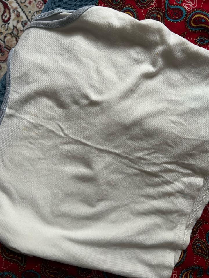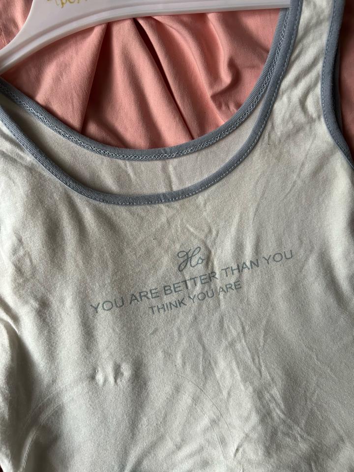 Предлагаю аккуратную трикотажную майку в нежном светлом цвете с серой окантовкойM