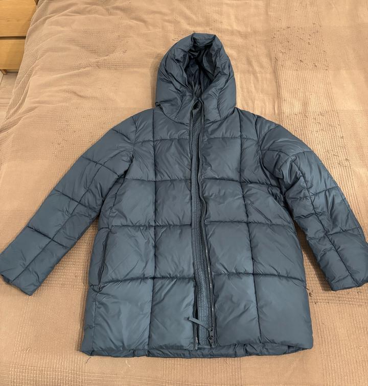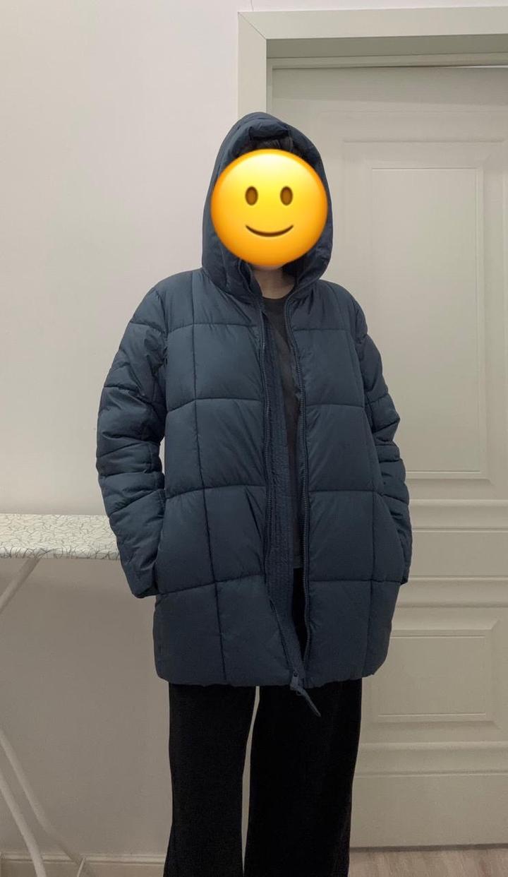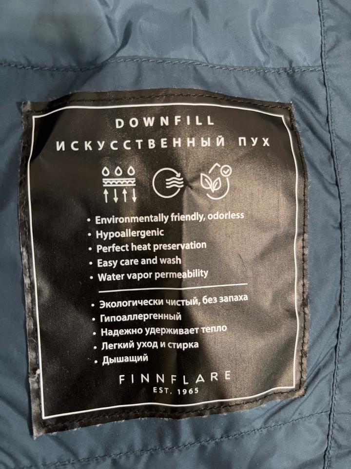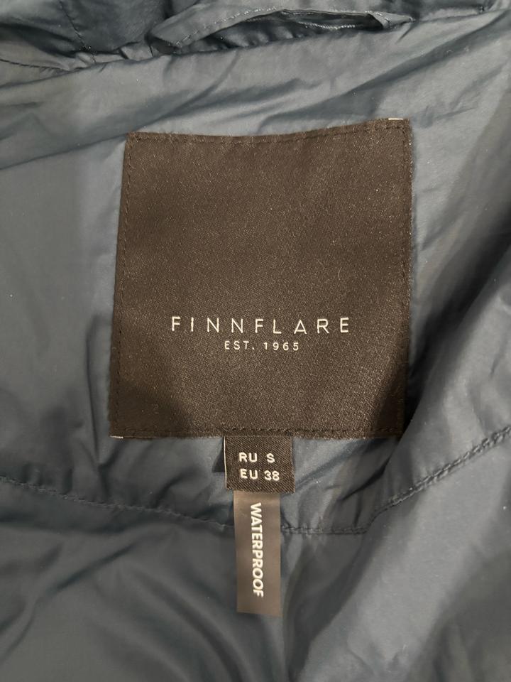 Осенняя куртка синего цвета бренда Finn Flare. Размер - S, большемерит. Выдерживает температуру до минус 10. Длина куртки 77 см, рукав 59 см. Артикул: 455877