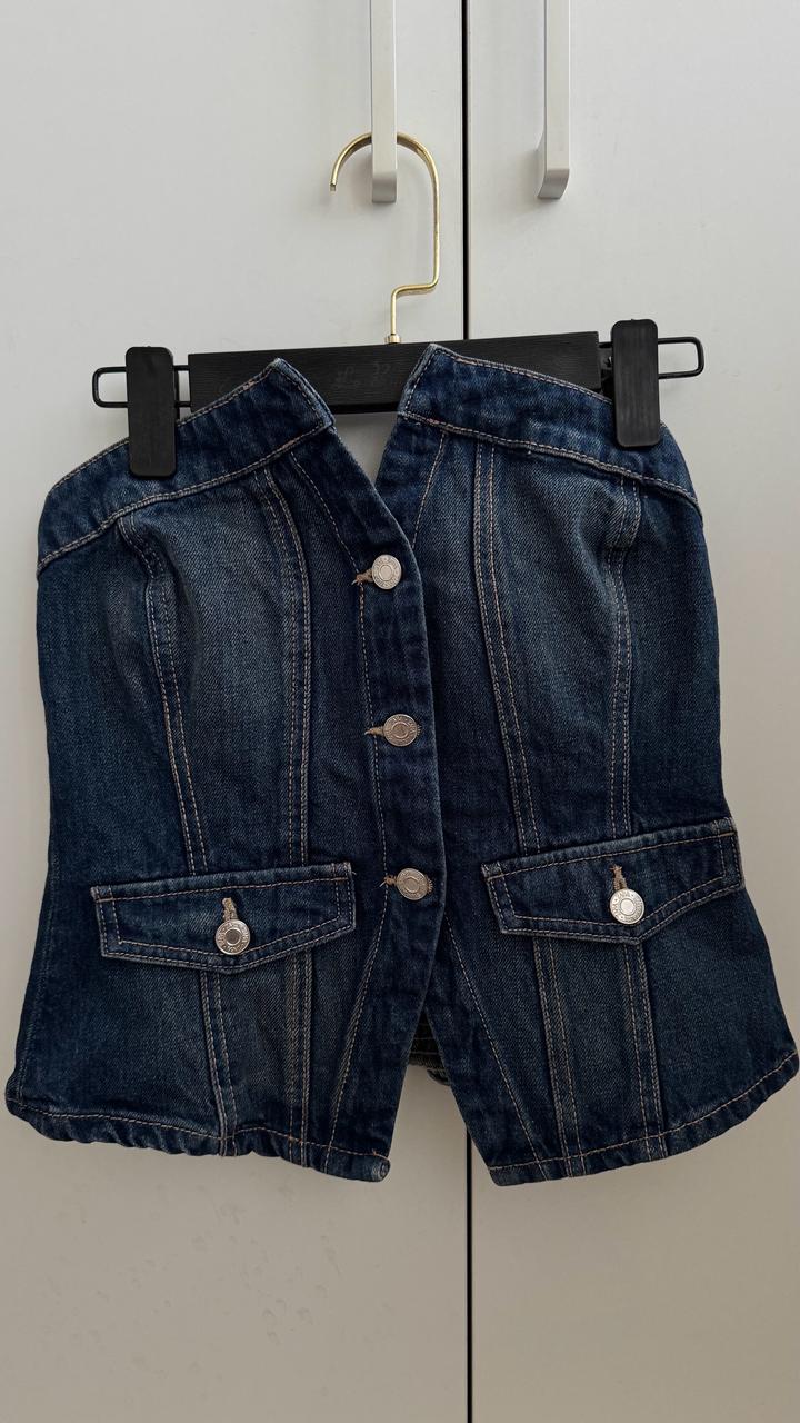 Джинсовый топ Zara,пуговицы рабочие,сзади резинка.Можно стилизовать и одевать поверх других вещей.Одевала 1 раз Артикул: 456420